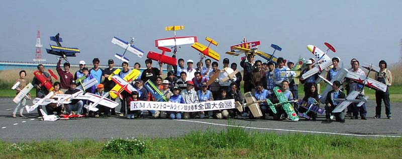 5月10日、新緑も鮮やかなKMA飛行場に、、全国各地からノスタルジアスタント、第二種曲技、風船割りの3種目に、KMAのUコン大会空前、延べ77名の選手が参加して上記大会が開催されました。
