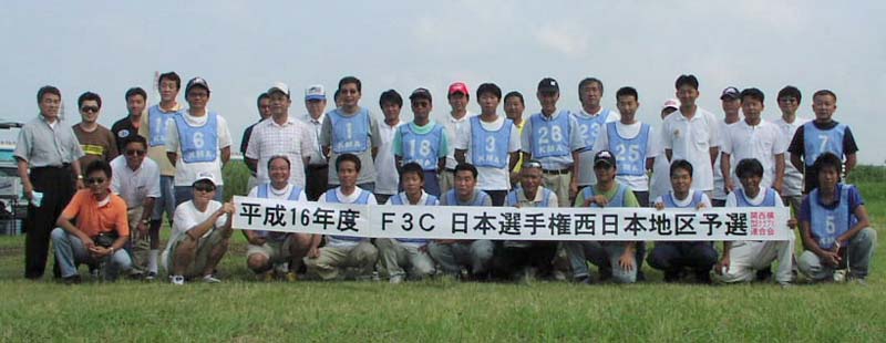 | 上記予選が平成16年7月10日11日の2日間にわたって京都市伏見区のKMA飛行場において開催されました。 エントリーは合計29名で、ここ数年減少気味であった参加者が増加に転じたことは大変喜ばしいことだと思います。 天候ですが初日受付前まで近畿地方は強烈な雨に見舞われ開催が危ぶまれましたが、受付前に天候は持ち直し、その後大きく崩れることもなく2日間で2ラウンドの競技を無事行う事が出来ました。 結果は下表のとおり、川口選手が2ラウンドとも安定した演技でトップの1000点を獲得し一位で通過、そのあとに木村、澤本という順位で、上位8名の方々がレベルの高い当地区の予選を通過され、日本選手権への出場権を獲得されました。 代表選手の皆さんのご健闘をお祈りいたします。 |