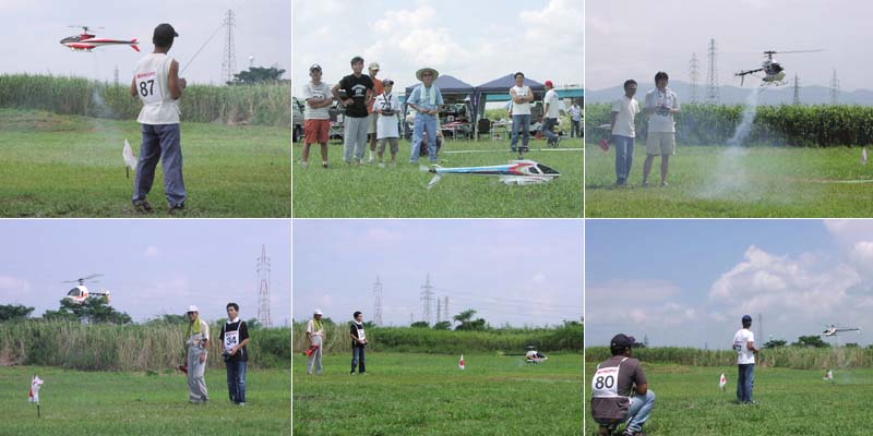 このあと引き続きF3Cクラスに入り、少し消化したところで昼休み、国井氏のデモ飛行などをはさんで午後からF3Cクラスの残り全員のフライトを行いました。F3Cでは中学生の野々垣選手のフライトに注目が集まり、演技終了時には会場から大きな拍手がわき上がりました。