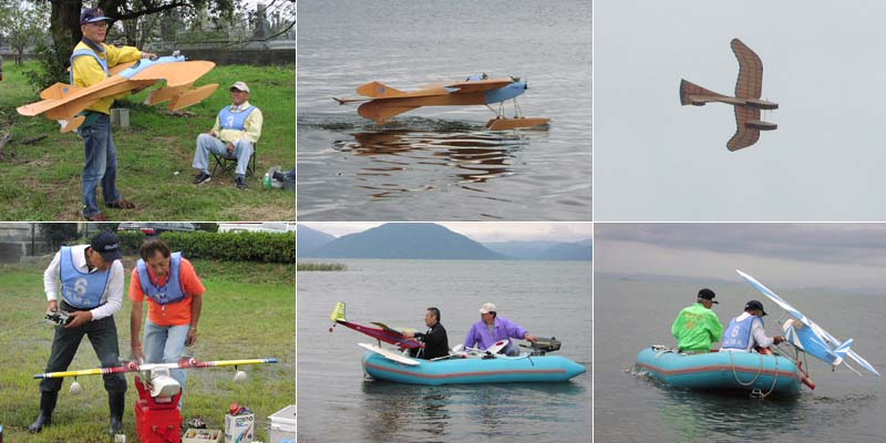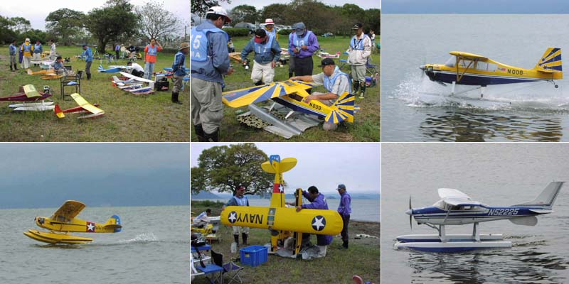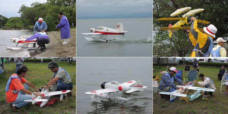 参加者は昨年並みの19機、気楽なフライインということでスケール機にフロートを装着した力作が多く、お昼を中心にたくさん集まったギャラリーと共に思い思いのスタイルでフライトを楽しみました。