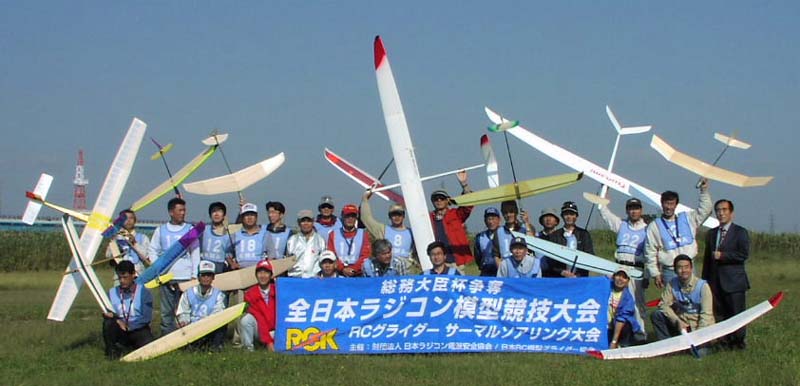 | JRGA・KMA共催の上記大会が、秋晴れの爽やかな関西模型飛行場で開催されました。 特に、今回はサーマル級(オープン級)に総務大臣杯が授与される事となり、全国各地から延べ37名の選手が競技に参加しました。 午前9時、競技に先立ち日本ラジコン電波安全協会の秋山専務理事より挨拶をいただき、その中でラジコン電波増波に向けての取り組み状況の説明、そしてマニアの安全かつ有効なラジコン電波利用と一人でも多くのラジコン操縦士への登録のお願いがありました。 午前9時30分、まず電動級から競技開始、ハンドランチ、オープンの各クラスの順で実施。1ラウンドを終わったところで昼食をとり12時45分から第2ラウンドの飛行を行いました。 天候は朝から抜けるような青空、あちこちに大きなサーマルが発生する絶好のグライダー日和となり、和気あいあいの雰囲気ながら、選手達はサーマルを求めて虚々実々の駆け引きも交えて熱い戦いを繰り広げていました。 午後3時、無事2ラウンドのフライトを終了、秋山専務理事より栄えある総務大臣杯を岡本修平選手に手渡されたあと各クラスの表彰式とつづき、最後に競技委員長長谷川 克さんが苦心のすえ選ばれた賞品のかずかずを抽選でお渡しし、4時30分おひらきとしました。 当日の入賞者は以下のかたがたです(敬称略) 総務大臣杯・サーマル(オープン)級(13名) 1位 岡本 修平 2位 鈴木 基弘 3位 大島 哲 電動サーマル級(13名) 1位 鈴木 基弘 2位 山口 啓二 3位 岡本 修平 ハンドランチグライダー級(11名) 1位 岡本 修平 2位 大島 哲 3位 堀内 恒夫 |