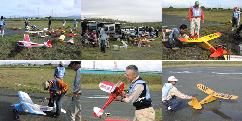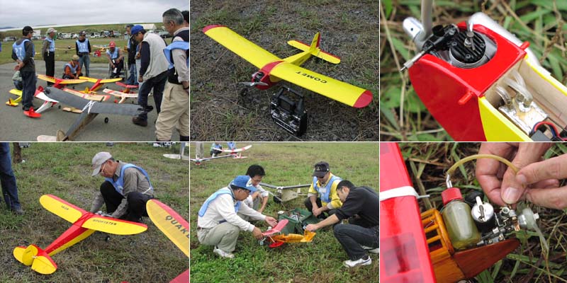 10月31日、京都市伏見区のKMA飛行場で上記大会が開催されました。 天候不順の今年、今回も前夜から雨が降り心配されたお天気でしたが、朝にはすっかりあがり無事開催の運びとなりました。 エントリーは地元関西をはじめ、岐阜、三重など中部地方からもたくさんの参加を得て、32名がそれぞれ思い入れを込めた60機以上の機体やコレクションを持参し、いつもどおり賑やかな大会となりました。 特に今回はディーゼルエンジン搭載の機体がたくさん集まり、なつかしいディーゼル燃料の匂いとディーゼル論議に人だかりが出来ていました。 昨年に続き、お昼過ぎには大谷会長も会場に元気なお姿をお見せいただき、ベストモデル賞の審査をされたりフライトを楽しんだりしておられました。 午後3時30分、思う存分飛行を楽しんだあとベストモデル賞の表彰、協賛各社様および参加者有志からいただいた景品の抽選会を行ったあと、来年の再会を約してお開きとしました。 おだやかな秋の1日、飛行を堪能した当日の様子をご覧下さい。 ベストモデル賞 ゴールデンエージの部:1位 竹中 稔 2位 大倉 恒彦 3位 程能 修一 オールドタイマーの部:1位 山村真平 2位 掛布 五男 3位 小関 肇 |