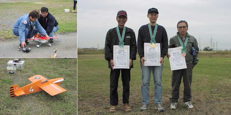 11月14日、京都市伏見区のKMA飛行場において中・小型スケール機による上記大会が開催されました。 天候の不安定なこの時期、天気予報では雨になるということで競技の開催が危ぶまれましたが、スケールの部とフライインの部併せて延べ25名の選手が集まりました。 午前9時競技開始、飛行場の空域制限により4サイクル70クラス、2サイクル50クラスというエンジンサイズの制限を設けての開催となったため、大型機のダイナミックな飛行を見ることは出来ませんでしたが、数多くの電動モデルや、小型スケールでもこれだけ出来るという超精密モデルも登場し、春のスケール大会とは異なった趣がありました。 午前中にスケールクラス、フライイン各1ラウンドを実施、昼休みにはOK模型の高松社長とKMAニュージャンル委員長の駒宮さんによる4c52エンジン搭載のF1レーサーによる模擬パイロンレースなども行われました。 午後は各クラスの第2ラウンドを実施、心配された雨も降らず午後3時すぎ無事全機の飛行を終了、協賛各社から頂いた賞品を抽選で配ってお開きとしました。 当日の入賞者のお名前は下記のとおりです。 KMAスケール秋季全国大会 1位:鈴木 薫 2位:谷口 由秋 3位:吉田 祐一 |