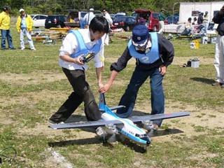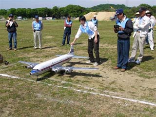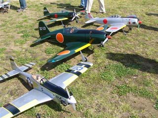 5月8日、神戸ラジコンクラブの飛行場において2005年度のKMAスケール全国大会が開催された。 天候は晴れ、風も少なく絶好のスケール日和であった。 参加者はスケールクラス18名クラブマンクラスに10名、フライインに14名、合計42名である。 参加機は、4発の大型機や、双発機、単発でも120クラスや、ガソリンエンジンを積んだ大型機まであったが、 山下選手は15エンジンを積んだ小型精密スケールのゼロ戦を持参して注目を集めた。 午前中に1ラウンドを行い、午後から2ラウンド目を行って、各クラスの入賞者が決まった。(文と写真:竹林 悟) 当日の入賞者のお名前はつぎのとおりです。 スケールクラス 1位 芝山 勝利 2位 衣川 章三 3位 伊藤 晃 クラブマンクラス 1位 福永 豊 2位 竹林 恒夫 3位 稲田 満雄 |