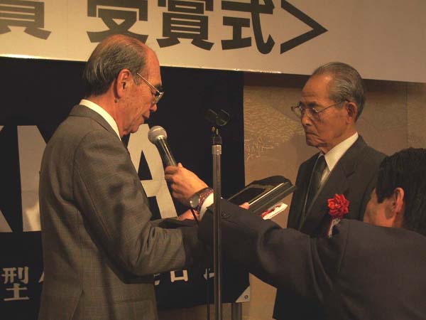 KMA長谷川会長から、ラジコン界の長老高原秀郎氏に小川賞を授与。