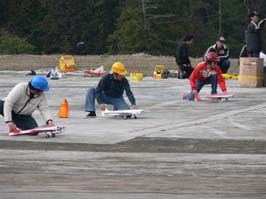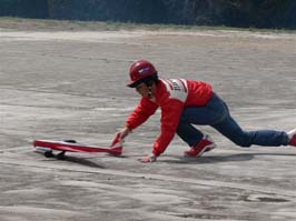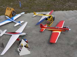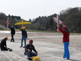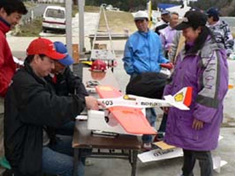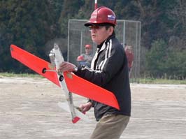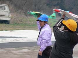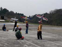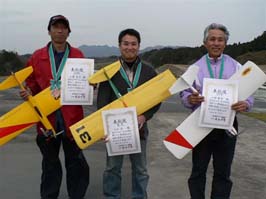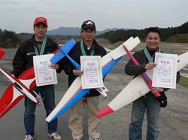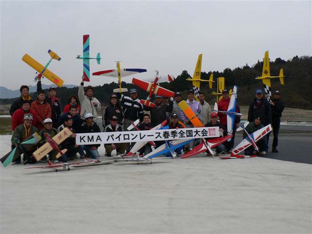 | 3月26日に、KMA第2飛行場においてKMAパイロンレース春季全国大会が開催された。 参加者は、近畿を中心に、中国、東海、関東からベテラン選手が集まりダブルエントリーを含め30人がエントリーした。 競技は15ジュニア、10セニア、25クラスの3種目である。まず15ジュニアから始まり、25クラス、10セニアへと進み、各種目3ラウンドを行い、獲得ポイントで順位がつけられたが、同点の場合は最速タイムで決められ、フライオフによる決勝は無かった。 結果は、15ジュニア1位が河本浩、2位小林繁男、3位札葉高司、25クラスは秋川俊博、大井高三、河本浩、10セニアは鎌野真一、島崎良則、中西信昭、となった。 (写真と文:竹林 悟さん) |
