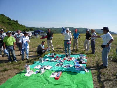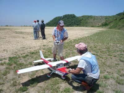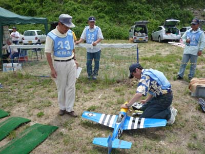 | 当初予定の5月17日が雨天となり順延となっていたKMAスケール競技&フライ・イン全国大会が6月28日、兵庫県淡路市のKMA淡路市・貴船模型飛行場で開催されました。 事前の天気予報では雨が心配されましたが当日は素晴らしい天気となり、前日から飛行場の整備を行ってきた関係者一同ほっとした様子でした。 午前9時30分、競技開始に先立ち、この飛行場でのスケール大会は初めてと言うことで芝山委員が目慣らし飛行を行い、安全飛行空域や右側山手の距離感などを参加者に実感してもらいました。 その後、延べ30名以上の参加者はすばらしい天気と開放感あふれる飛行場の中でそれぞれ自慢の機体を実機の雰囲気たっぷりに飛行させ、パイロットはもとよりギャラリーも存分に楽しんでいました。 昼食時には地元婦人会の皆さんが淡路特産のタマネギを販売され、好評のうちにあっというまもなく売り切れとなっていました。 地域の特性を生かしたこのような試みは参加された皆さんにも好評で、今後も地域の皆さんのご協力を得て実施してゆきたいものです。 昼食後、飛行を再開し、午後3時30分、事故もなく無事全機の飛行を終え表彰式へと移りました。 表彰式では、入賞者にはKMAのメダルが贈呈され、メーカー各社から贈られた、たくさんの協賛品を抽選で配布して、午後4時解散としました。 当日の参加者、参加機のデータはこちらです(データ提供:橋本 実スケール委員長) |