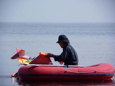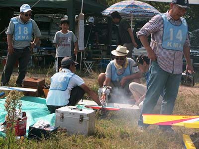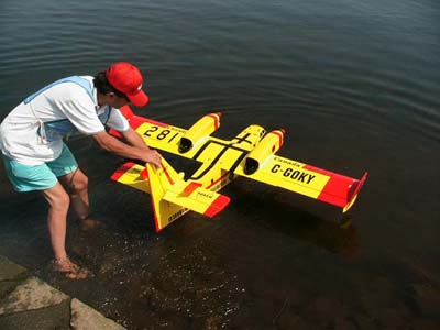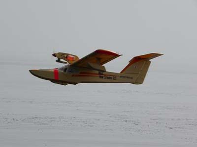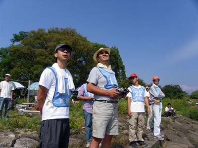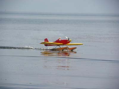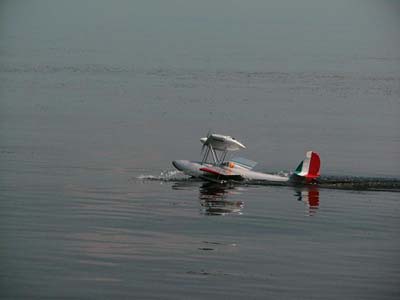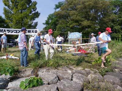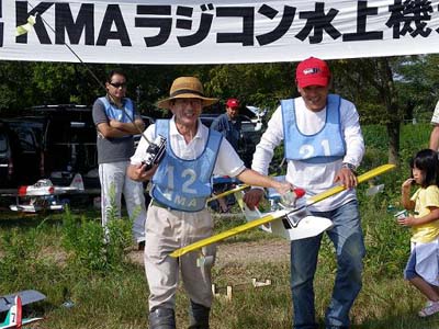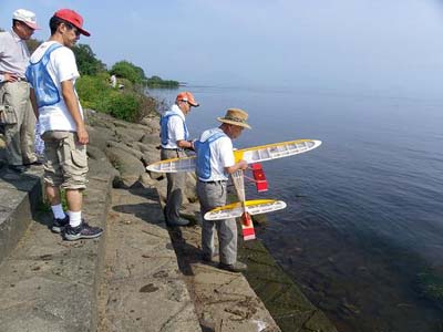 そんな中、8時過ぎには、ほぼ22名集合、とにかく湖面状況が良いので早くスタートしようとの事で記念撮影後、8時20分ごろにはフライト開始。今回はフライインということで、第一ラウンドは一人6分位を目安に一人ずつの自由フライトです。 フライトが始まっても湖面は依然ベタなぎ状態、時折プレジャーボートの波が寄せる程度でとにかく1ラウンドを最高の湖面状態で 終了。11時半過ぎOSさんのデモ飛行をフライベビーと2式水戦で 実施、湖面のなぎは続いており、デモ飛行も離水・T&Gが素晴ら しい水しぶきを残して行われ、終了時には拍手喝さいでした。 12時ごろ弁当が到着、引続き湖面状態は良く、休憩なしで役員は交代で食事をしつつ、第2ラウンドを 実施。今度は2機づつの同時飛行で2時過ぎには全飛行を終了、そのあと役員2名(高松・橋本)のフライトとOSさんのデモ飛行を行い無事終了しました。 残念ながらエンジン機が3機ほど墜落トラブル、エンストトラブルは5機ほどで今回も救助艇は大忙しで した。電動機はトラブルなく、次回はさらに増えるだろうなーと役員 たちの予想です。 とにかく今回はべたなぎが最後まで続いて、皆さんどうしたことかと 不思議がっていました、私たちも片付けながら後ろ髪を引かれる 思いでの閉幕でした。3時過ぎには片付け終了、それぞれ会場を 後にしました。 (文、写真:橋本 実) |
