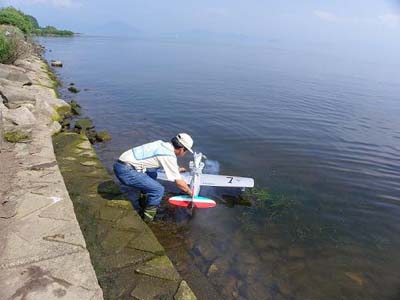 | 9月27日、今回で37回目と回を重ねてきた琵琶湖での水上機大会ですが、こんななぎは始めて・・と思われるほどのすばらしいコンディションに恵まれました。