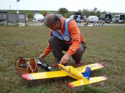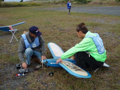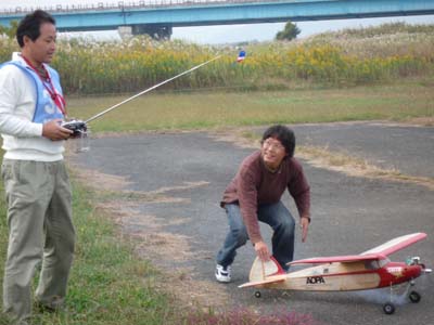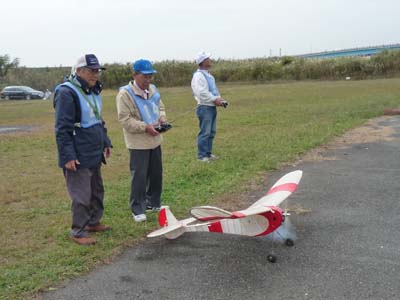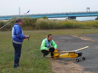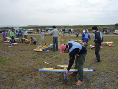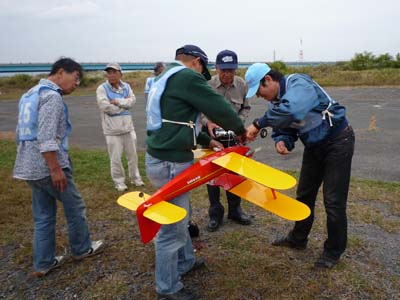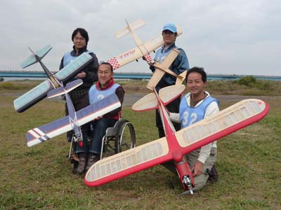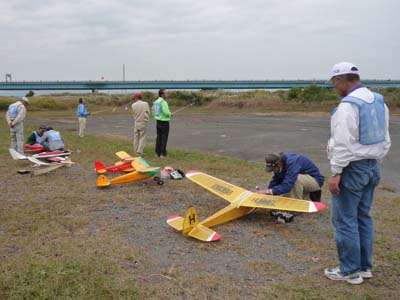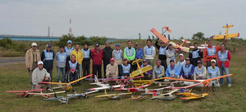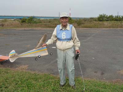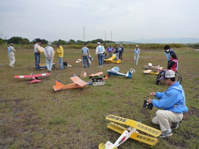 | 懐かしい機体をのんびり楽しむというコンセプトで年々参加者の輪が拡がっている上記大会が、平成21年10月25日(日)、京都市伏見区のKMA飛行場で開催されました。 今回は関東から3名、滋賀から1名の新人(失礼)メンバーも加わり、常連の鹿児島、静岡などからの遠距離組に関西勢も加わり賑やかなイベントとなりました。 午前中は風が強く、比較的風に弱い飛行機が多いこのイベント、フライトのほうが心配されましたが昼前にはほとんど無風となり、午後3時のフライト終了時まで絶え間なく複数の飛行機が飛び回るという、このイベントでは前代未聞の(!!??)事態に競技役員も嬉しい悲鳴を上げていました。(いつもはお昼過ぎには疲れのためか?飛ばす人がめっきり少なくなるのです) いつも通り11時からタッチアンドゴー競技、昼食を挟んで自由飛行というスケジュールで、参加者一同思う存分フライトを楽しみ、午後3時には終了、協賛各社からの景品を抽選でいただき、散会としました。 (文と写真:山本修造) |