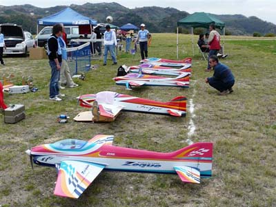 | 4月11日、兵庫県淡路市の淡路市貴船模型飛行場においてKMA主催によるF3A曲技競技とJRA曲技検定会が行われました。 F3A曲技競技には17名が参加、JRA検定会には34名の参加がありました。 天候は曇り時どき晴れで、風はやや強めです。競技はJRA検定会から始まりました。 最初はスポーツマン級です。受験者は7名、そのうち3名が合格しました。 次のアドバンスドA級では、受験者5名全員が合格しました。しかし演技がぐっと増えるアドバンスドB級では合格者はありませんでした。 F3Aパターンのエキスパート級では6名中3名が4合格しまし、プレマスターズ級では受験者5名が全滅しました。 最後のマスターズ級では7名中3名が合格しました。 検定会が済んだあとはKMAのF3A曲技競技です、これには17名が出場して熱戦を繰り広げました。 表彰式では上位3名方にKMAメダルを贈呈して、大会は終了しました。 KMA F3A曲技競技入賞者: 1位 坂本武志 2位 加藤秀政 3位 熱川洋一 検定合格者: スポーツマン級 熱田善久、丸井広和、浅井 章 アドバンスドA級 畠山敏久、船山悠司、椢原 光、西尾盛文、前地章生 エキスパート級 岸田栄治、岡本清嗣、桜本 繁 マスターズ級 坂本武志、福島 尚、熱川洋一 (文と写真 竹林 悟) |