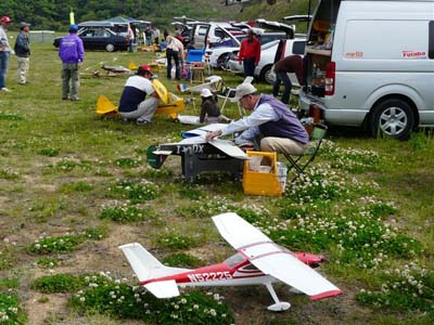 | 2010年KMAスケール競技春季全国大会 2010年6月9日 竹林 悟 5月9日、兵庫県淡路市にあるKMA淡路市、貴船飛行場において、KMAスケール大会が開催されました。参加者は、スケールフライト級に19名、スタンドオフスケール級に5名、フライインに16名、合計40名です。天候は薄曇ですが、風が少なくまずまずの飛行日和です。 競技はスケールフライト級から始まりました。このクラスはスケール機なら、自作、市販完成機を問わなくて、簡単な演技と実機らしい飛行振りを採点するので参加しやすく、スケール競技の入門クラスと言うところでしょう。 参加機は単葉機や複葉機、第1次、第2次大戦機などがあって、セスナなどの民間機も加わっています。動力もエンジンや電動があって賑やかです。 渡辺智久選手は、OS-FS52を積んだセスナを安定よく飛ばし優勝しました。 ベテランの角田 忠選手は、大型パイパーカブを実機らしく飛ばして2位になりました。毎回、小型スケール機で出場する山下一郎選手は、25クラスの飛燕を戦闘機らしいスピードで飛ばし3位に入りました。 KMA長谷川会長と、岡本順一委員が待機場でスタンドオフクラスの機体審査をし、採点しています。それが済むと飛行審査です。規定の飛行演技を、伊藤隆紹、島田 穆、芝山峰冶KMA委員が採点します。OS15LAを積んだ山下一郎選手のゼロ戦が圧倒的な静止点で優勝しました。飛行点1位だった久保昭博選手は2位になりました。OS-FS120を搭載したゼロ戦を飛ばした高木選手は3位でした。 最後はフライインです。16名の人達がいろんな機体を次々と飛行させ、時間いっぱい自由フライトを行ないました。 閉会式では入賞者にKMAメダルを贈呈し、協賛各社から戴いた協賛品を抽選で全員に配布して終了しました。 入賞者: スケールフライト級 1位 渡辺智久、2位 角田 忠、3位 山下一郎 スタンドオフスケール級 1位 山下一郎、2位 久保昭博、3位 高木秀紀 以上 当日の参加者、参加機のデータはこちらです(データ提供:橋本 実スケール委員長) |
