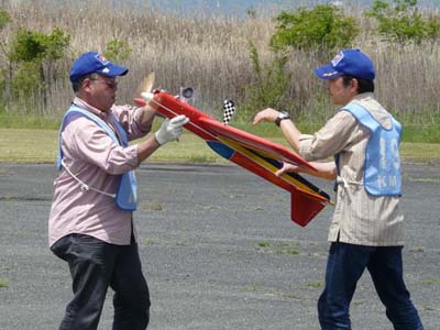 5月15〜16日に京都市伏見区のKMA関西模型飛行場においてコントロールライン大会が開催されました。 15日はノスタルジアと小型機のF2B曲技で、参加者は28名です。天候は晴れ、風も少なく絶好の飛行日和です ノスタルジアは1979年以前に設計された機体で、エンジンも2スト46以下と決められていて、参加者の 年齢もノスタルジアらしく45歳から60歳くらいです。昔のUコン少年がそのまま成長したようです。 25以下の小型機も参加者は14人です、1位の末松選手は6.500点をたたきだし、2位以下の5.300点台を 大きく引き離して、小型機でもここまで出せるぞ、と言うことを示しました。 午前中第1ラウンド、午後第2ラウンド、合計2ラウンドです。中にはノスタルジアと小型機を掛け持ちの 選手もいて、1日に4ラウンド飛ばすと疲れるなー、と言っていました。 16日はメインのF2B曲技オープンです。関東から九州まで有名な選手がずらりといて、緊張感は日本選手権 並です。天気は晴れですが、風は昼前から強くなりました。 参加選手は39人です。やはり第1、第2ラウンドの合計点で順位が決まります。動力はエンジンが多い中、 電動も12機参加しています。電動は騒音が少ない、燃料で汚れない、出発時の助手が不要だ、などの利点が ありますがなかなか普及は進まないようです。 競技結果は1位が埼玉県の横山 満、2位、愛知県の村田浩司、3位埼玉県の大畑啓美選手でした。電動で頑 張った福井県の能米昭一郎選手は4位になりました。彼は世界選手権の経験者でもあるので、世界戦で電動 が好成績を収めているのを見て電動に切り替えたそうです。 競技は4時に終了、表彰式では1〜3位にはKMAメダルを、4位から6位には表彰状が贈られました。優勝した 横山選手の息子さんも初出場して16位になり、彼は最年少優秀者ということでKMA前会長の大谷演慧杯を 手にしました。 成績 : F2B曲技 ノスタルジア級 1位 原 誉祠、2位 末松茂樹、3位 植松正成、 F2B曲技 小型機級 1位 末松茂樹、2位 佐藤哲司、3位 中山英生、 F2B曲技 オープン級 1位 横山 満、2位 村田浩司、3位大畑啓美、4位 能米昭一郎、5位 増田昭三 大谷演慧杯:横山和哉 以上 (文、写真:竹林 悟) |