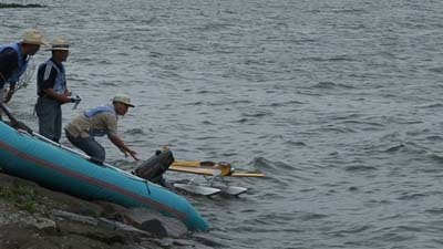 天候は曇り、無風で、湖面はべた凪です、水上機には最高の条件です。