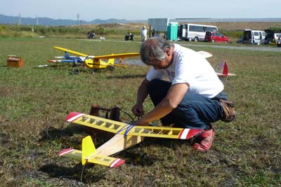 | 昔懐かしい機体や少年の頃あこがれたラジコン機を持ち寄り、ゆったりと楽しむオトナの集まりとも言える上記大会が、平成22年10月17日(日)、京都市伏見区のKMA飛行場で開催されました。 全国的にもあまりこの種のイベントが開かれないとあって、東は関東から、中部、関西はもちろん、遠く鹿児島からの参加者にも参加いただきました。 天候は今年の春の大会同様、イベント開始時からほぼ無風といっていい好条件で、フライヤーも見学者の皆さんもフライトに、展示された懐かしいエンジンやラジオを囲んで話の輪があちこちで拡がっていました。た。 スケジュールはいつもどおりで、9時から自由飛行、11時からタッチアンドゴー競技、昼食時にはビンテージ品のオークションで盛り上がり、午後は再び自由飛行、午後3時にはスケジュールを終了、協賛各社からの景品を抽選でいただき、散会としました。 なお、このイベントは毎年2会、この伝統ある京都伏見区のKMA関西模型飛行場で開催されてきましたが、次年度はそのうち1回を兵庫県淡路市に昨年開港したKMA淡路市・貴船模型飛行場で開催することを検討中であると言うことを、参加者の皆さんにお伝え致しました。。 (文と写真:山本修造) |
