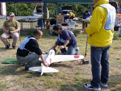 | 11月7日、 約30名の参加を得て、秋のKMAスケール大会が淡路貴船の模型飛行場で 実施されました。 珍しく、朝からポツリポツリと水滴が降ってきました。 大会委員長橋本より挨拶で、今日はこんな天候ですが午後は回復との 予報なので2ラウンド行いますと強気の発言、実際その通りの天気で した(途中雨で10分ほどの中断がありましたが) 。 まずスケールフライトの飛行競技からスタート、当日欠席もあって若干5名 の参加(入賞確立は高い!)、和気藹々の中にも選手それぞれ緊張の フライトでした。 次にタッチアンドゴーとタイムトライアルを組み合わせたスポーツ級の フライトです。これも6名の参加者で争いました。 最後はフライ・インです、15名が参加で2名づつのフライトです。 各自7分程度で自由に飛ばします。 11時過ぎに終了し11時半ごろ 地元の特産品の販売が、地元の人たちにより行われ、大盛況でした。 引続き、OK模型さんのデモフライトがあり、食事休憩です。 午後は12時半から2ラウンド目のスタートで2時半に終了、1ラウンド で疲れた人や2ラウンド目で盛り返した人それぞれ楽しく競技を終えまし た。 引続き表彰式に移り、長谷川会長自ら入賞者の表彰が行われ、受賞者 は感激のあまり、目に涙(これは一寸オーバーです!)でした。 全般に微風でスケールフライトには良好な天気でした。 皆さん満足され 又来年会いましょうということで、帰路につかれました。 (レポートと写真:KMAスケール専門委員会 委員長 橋本 実) |