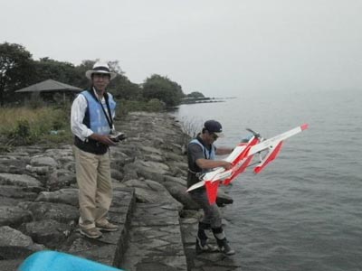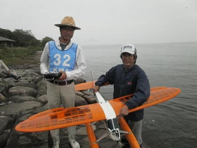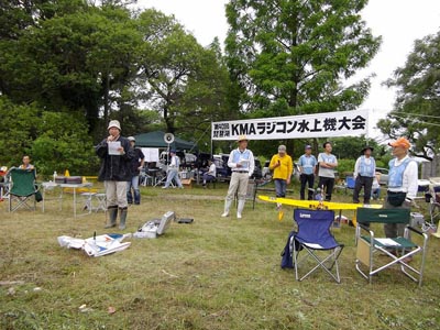 | 6月12日KMAの水上機大会が、例年の会場である琵琶湖湖畔、旭風車村の近くで開 催されました。 初級〜6名、中級〜10名、オープン級〜18名の総勢34名のエントリ ーです。 今年は梅雨入りが早く6月に入っても雨が続いており、当日の天気も心配され ましたが、あんなに強く降ってた雨も、前日の土曜日の午後から上がり、吹いて いた風も、朝には収まり、本当に関係者の行いが良いとしか思えない、良好な コンディションになりました。 ただ、午後から降りだすとの予報で、昼食休憩を取らずに連続で競技を進めるこ とで、参加者の了解を得、島田大会委員長の挨拶でスタートしました。 競技は初級の部から6名の選手が8種目の競技に挑戦、続いて中級の部10名の選手 が10種目の競技に挑戦しました。 大会役員・選手の協力もあり、事故もなく11時 前に競技のほうが終わりました。 続いてオープン級のフライトです。天気次第で は2機づつのフライトも考えましたが、空の状況も大会を応援してくれてますの で、1機づつ、フライヤーの思いのままに飛ばしました。 オープン級は人気投票 により順位を決めます、いかに観客を引きつけるフライトが出来たかが、問われ ます。したがって、人気の機体には自然と皆さんの興味が集中、タッチアンドゴ ーが綺麗に決まると、拍手が沸きます。 18機のフライトも穏やかな水面と風、 曇り空ではありましたが、雨もなく全て演技が終わりました。 時間は午後1時過 ぎ、その後、採点結果を集計し、13時半から表彰式に移りました。 表彰式のあ と、東日本大震災 被災者への義援金をお願いし、ジャンケン大会、オークション などで多額の義援金を頂きました。 島田委員長が責任をもって新聞社厚生事業団を 通じて震災被災者へ送金するとの報告を行い、本大会を閉会しました。 入賞者は下記のとおりです。 <初級の部> 優勝〜湯川氏、準優勝〜塚本氏、第3位〜鈴木氏 <中級の部> 優勝〜角田氏、準優勝〜稲葉氏、第3位〜樋口氏 <オープン級> 優勝〜曽我氏、準優勝〜塚本氏、第3位〜南谷氏 報告KMA水上機委員 橋本(2011年6月15日) |