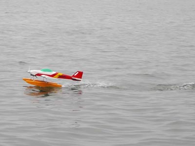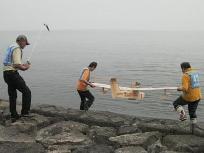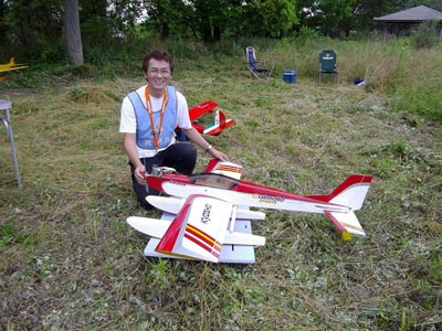 ![]() 仲井氏の大型ガソリン機PT-19(ゼノア26cc)が離水へ. |