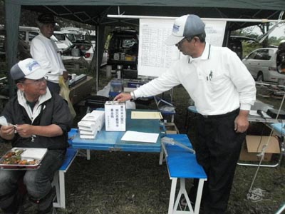 ![]() 義援金を入れるテトラの山原氏。有難う御座います! |