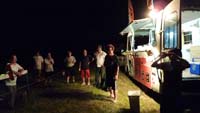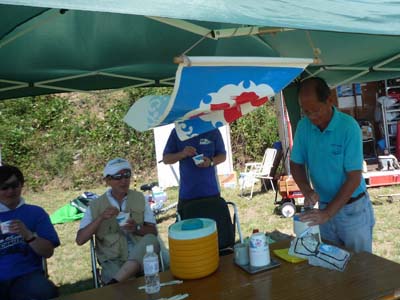 ![]() 飛行場整備に来てくださったOSの皆さん。新井商店のかき氷で一服 |