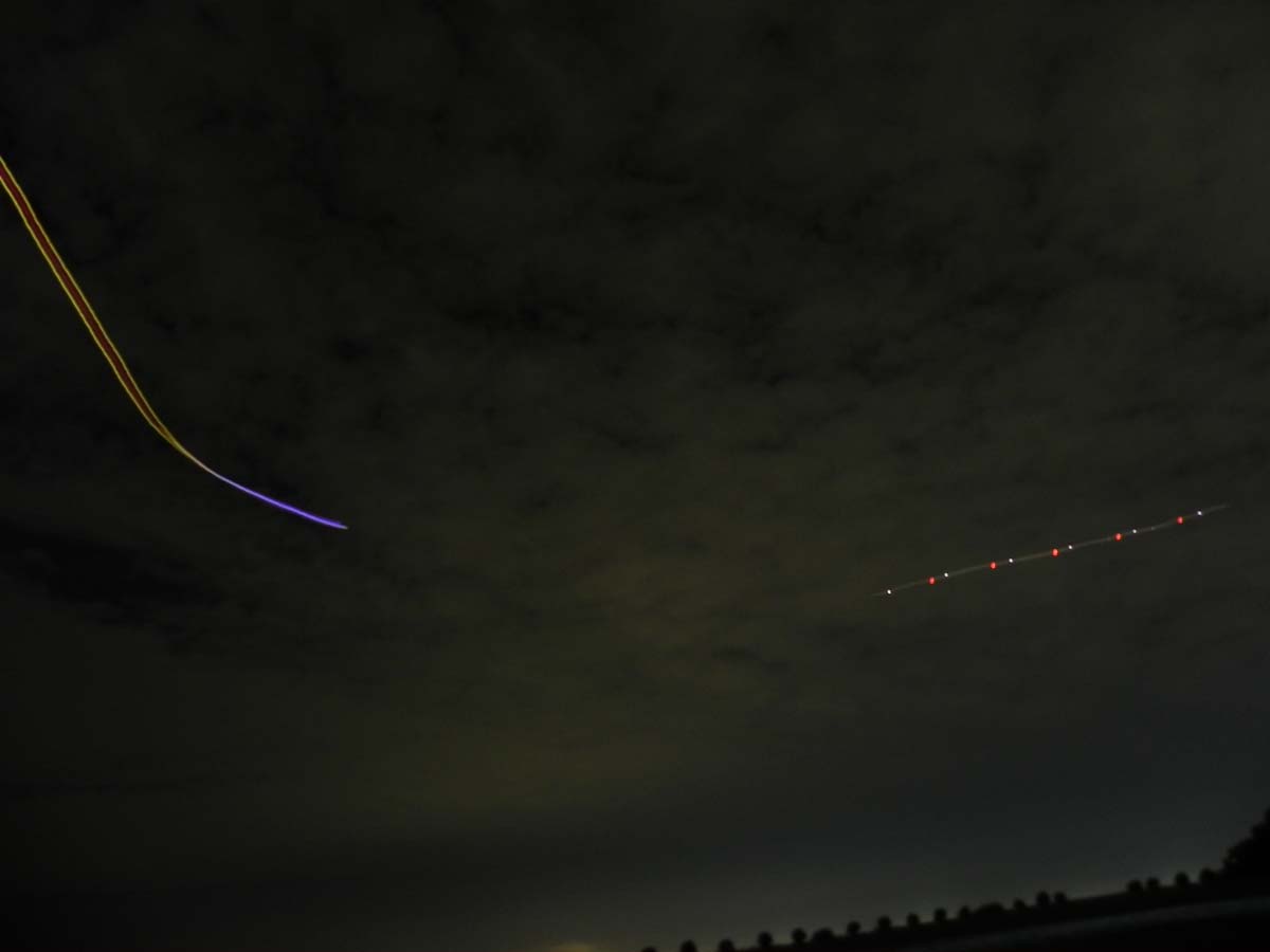 | ここから夜間飛行のシーンになります。画像をクリックすると拡大して見ることが出来ます。 特に真っ暗な画像からは何が飛び出すかわかりません。ぜひ写真の隅々までじっくりとご覧下さい (写真は横一列、4枚づつ並んでいます) |