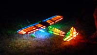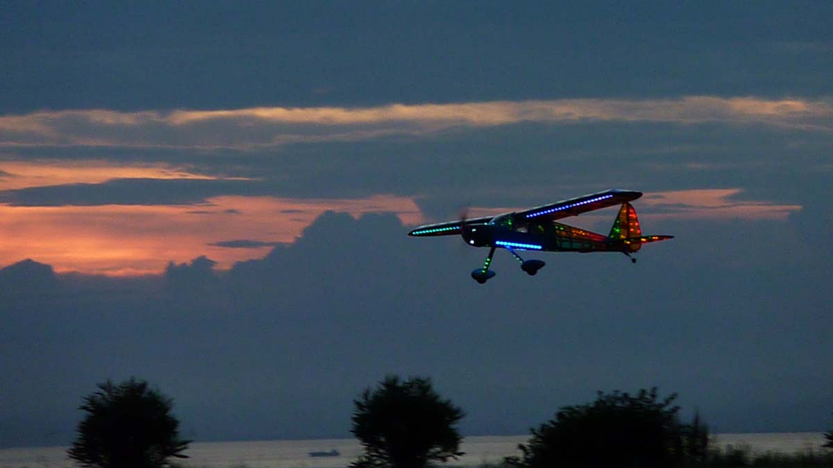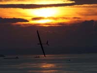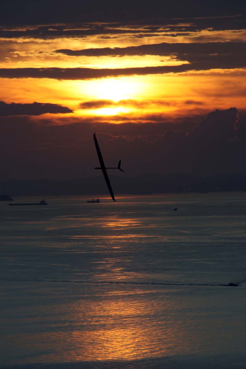 | RC模型の新しい分野に挑戦するというコンセプトで活動しているKMAニューカテゴリー研究会が昨年初めて実施した「KMAナイトフライトミーティングin淡路島」、その第2回目を7月9日に開催しました。 周囲に全く明かりがなく、瀬戸内の海に浮かぶ漁船や貨物船の小さなライト、そして遙か対岸の街々の光が瞬くという、ほぼ漆黒の闇の中でのフライトを期待して、午後3時の受付時には遠く関東からのフライヤーや見学の方も交えて20名近く集まり、それぞれ照明のアイデアを凝らしたナイトフライト仕様のエンジン機からグライダー、主流の電動機、そしてヘリなどを囲んで夜間飛行談義をしたり本番に備えてテストフライトを行っていました。 また、今回は富士宮やきそばのケータリングサービスやバースデーケーキ、ドーナツも参入して、ラジコン飛行だけにとらわれない楽しい雰囲気があふれていました。 そうこうするうちにこの飛行場名物のすばらしい夕日も沈み、徐々に夜間飛行のムードが盛り上がって来ました。 その後の模様は画像で紹介します。特に夜間の風景は縮小した写真ではわかりづらいので、サムネイルをクリックしていただいて大きな画像を見てすばらしい光景にひたってください。 写真と文:KMAニューカテゴリー研究会 山本 修造 写真協力:群馬県中山精治さん、滋賀県彦根市うっしー百太郎さん、東大阪市伊東さん |