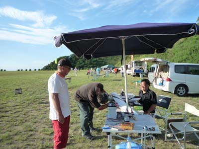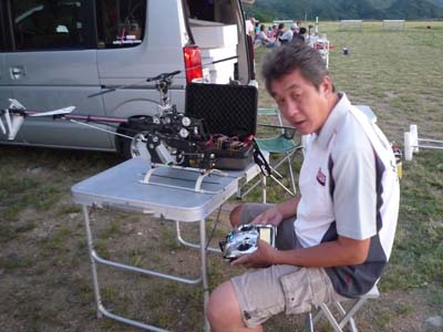 ![]() 久しぶりに持ち出したヘリを設定中の名人。期待してるで!(何を?) |