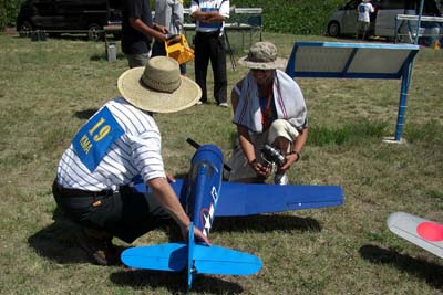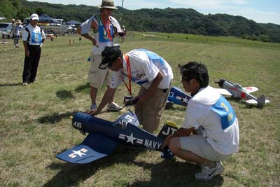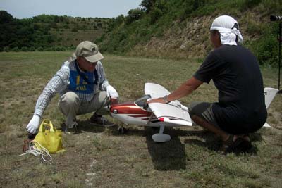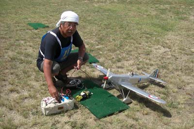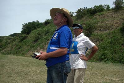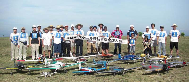 | 暑いのは覚悟の季節でのスケールファンの集いが、8月7日淡路のKMA飛行場で開催された。 参加者は22名、自由飛行がメインのため、それぞれが予備機を持参しての大変楽 しい大会であった。 前日に台風の余波で風が強かったため、風が心配されたが朝から穏やかな天気で ただ、太陽はさんさんと輝き日中はテントの日陰がないと倒れそうなくらいの一日で あった。 しかし、参加者はそれぞれ暑さ対策を施しての参加で、本当に皆さん元気で 主催者はびっくりするばかり。 第一フライトはゼッケン順で一人7分程度の自由飛行、各自思いのままに飛ばしてもらい 11時以降の第二フライトは二機づつの飛行を、順番はランダムに、淡路の飛行場に 慣れたのか、仲間同士 3機でスケールパイロンを実施する人も現れた。 自由に昼食をはさみ、空があかないよう順番に飛行を行ったが、午後は2時ごろから 太陽がフライヤーの正面に来るため、皆さんまぶしくて苦しい・・と嘆きのフライトであった。 3時過ぎには、そろそろ疲れがでたのか、空があく間隔に、スタッフも前日の草刈からの出動で、疲れがピークになり、そろそろ閉会式にと一同了解して、本日のスケールファン の集いが終了した。 最後に皆さん、充分堪能しましたか・・の質問に、全員が充分楽しんだ・との返事で お開きとしました。 (文と写真:スケール専門委員長 橋本実) 当日の参加者、参加機のデータはこちらです:PDFファイル90KB) |