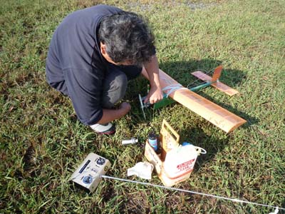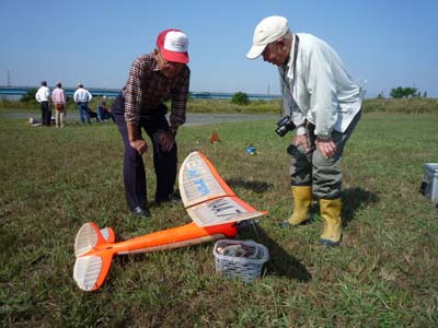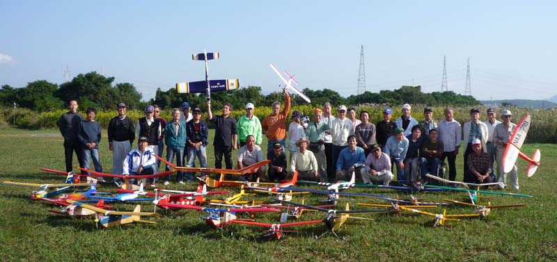 | 昔懐かしい模型飛行機の祭典「KMAゴールデンエイジ&オールドタイマー大会」が10月16日京都市伏見区のKMA関西模型飛行場にて開催されま した。 最近特に新しいメンバーが増え盛況になったように思われるこの催し、いつもどおり地元関西は勿論のこと、遠く東京、鹿児島、中部地方など 各地から総勢36名の参加者が総数60機近い機体を持ち寄って集いました。 毎回新たなメンバーが増えてうれしい限りのこのイベントですが、今回も7名 の新人が参加され、いつもどおり開会式で自己紹介 をしていただきました。 このあとお決まりの自由飛行(同時飛行は3機 までという制限付きです)を10時30分まで行い、その後2分間のタイム ラリー競技を行いました。 その間、参加された皆さんはいつも通りフライトを楽しむ一方で、情報交換や自慢のコレクションを前に四方山話に花が咲くという、 このイベントならではの光景があちこちで見られました。 タイムラリー終了後は再び午後の自由飛行に移り、皆さん大いに飛行を楽しまれたようでした。 3時過ぎに閉会式と表彰式、そしてお楽しみの協賛各社からのおみやげを抽選でいただきお開きとしました。 (文と写真:山本修造) |