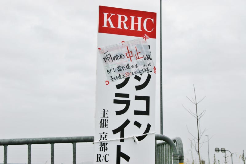 ラジコンフライトショー in 宇治川」でしたが、今回は生憎の雨により中止となりました。 当日も朝から京都RCヘリコプタークラブや事務局へ「今日イベント開催されますか?」といった問い合わせが多数あり、住民の方々の当イベントへの期待が感じられていただけに残念でした。 もちろん来年も開催できるよう準備を進めていく予定ですので、今後とも会員皆様のご協力をよろしくお願いいたします。 (レポートと写真:KMA事務局) |