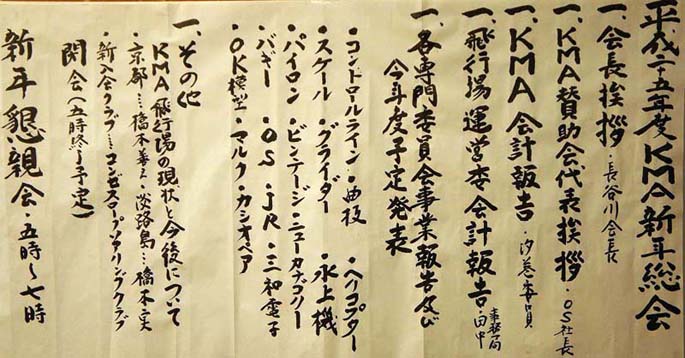 | 平成25年1月26日(土)に大阪市のホテルアウィーナ大阪にて恒例のKMA新年総会及び懇親会が100名以上の参加のもと、盛大に開催されました。 最初に行われた総会では、昨年度の会計報告・予算案・昨年度の事業報告及び、今年度の行事予定が提案、承認されました。 また、KMAの一般社団法人化に向けての進捗報告や「関西模型飛行場」「淡路市貴船模型飛行場」の現状報告もあり、あわせて飛行場の使用マナーに関して、より一層徹底することが誓われました。 総会の後は毎年恒例の懇親会となりました。 KMA加盟クラブのメンバー、KMA役員、ラジコン模型関係の御来賓にも多数ご参加いただき、年に1回の顔合わせというメンバーも非常に多く、お互いの活動報告、マニア、業界の区別なく模型談義の華を咲かせながらKMAならではの笑顔が絶えない有意義な会となりました。 (文:株式会社放送出版プランニングセンター 藤原 龍) |