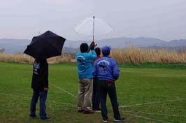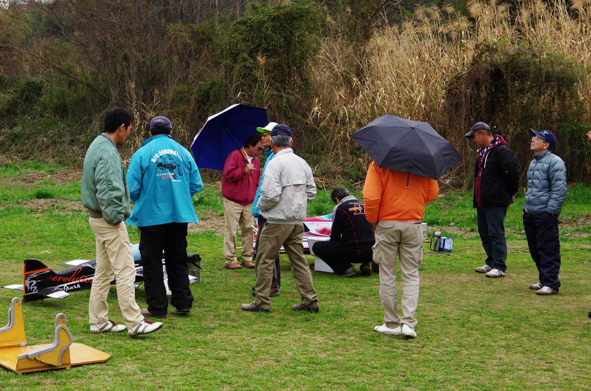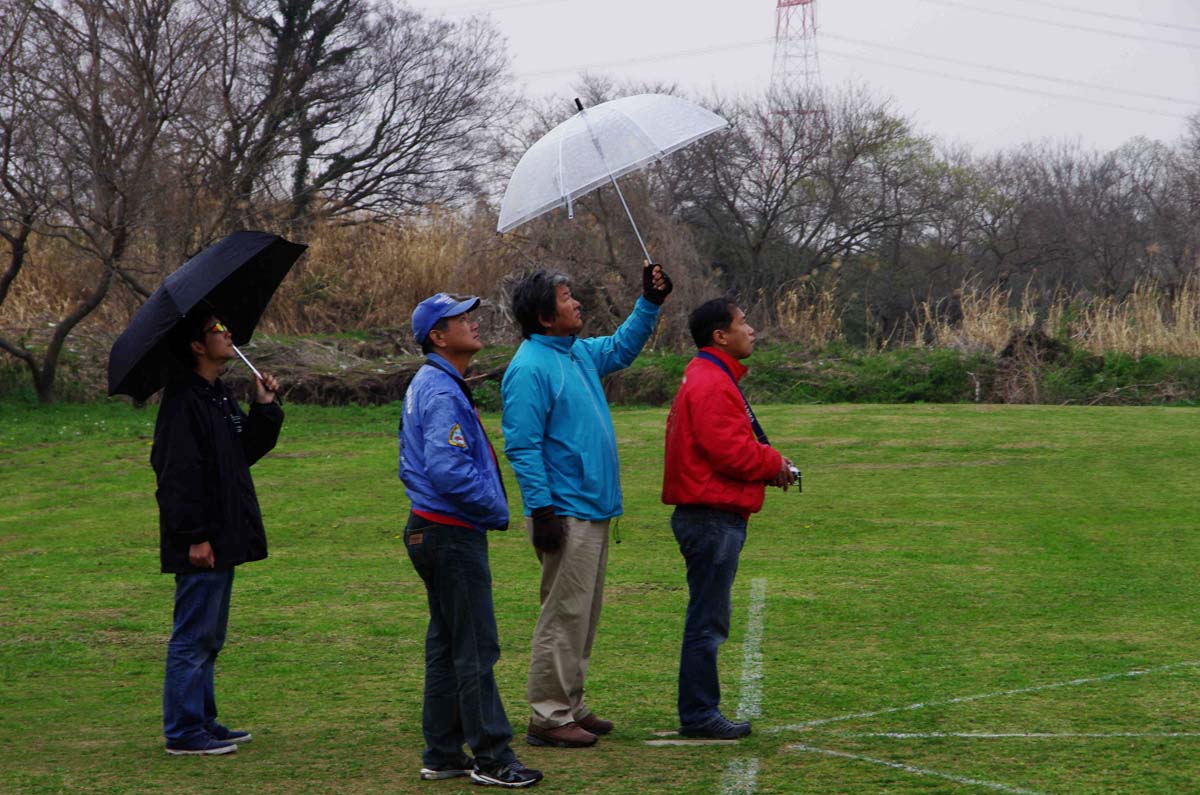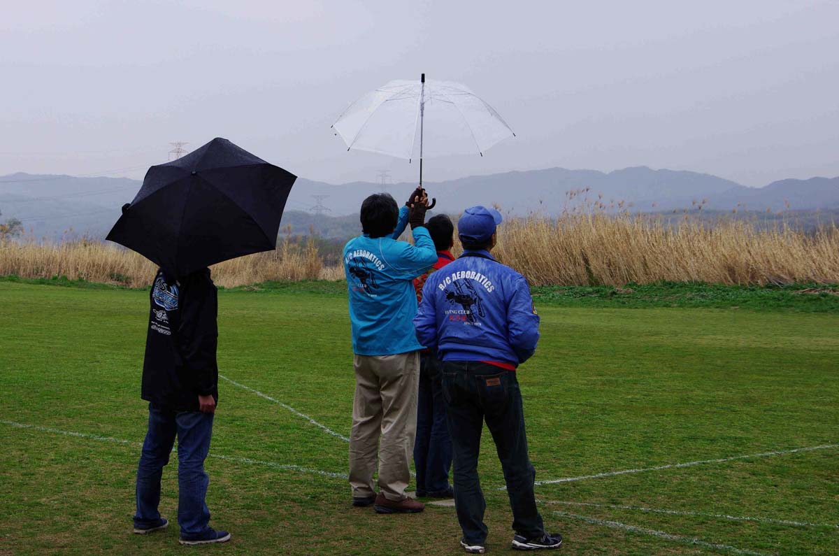 夕方まで曇りという朝の天気予報が外れ、2時過ぎには雨が降り始めましたが、熱心にも雨中のフライトを行うフライヤーもあり、熱のこもった一日でした。参加者の全員がフライトできなかったことが残念でした。