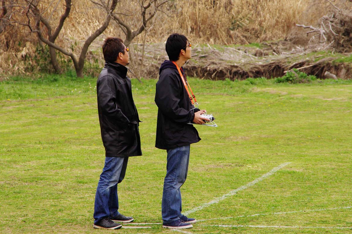 午前中は資料によるルール説明、選手権フライヤーによる模範飛行を行い、すぐに一般フライヤーによる飛行を行い、その差を見てもらいながら解説を行いました。