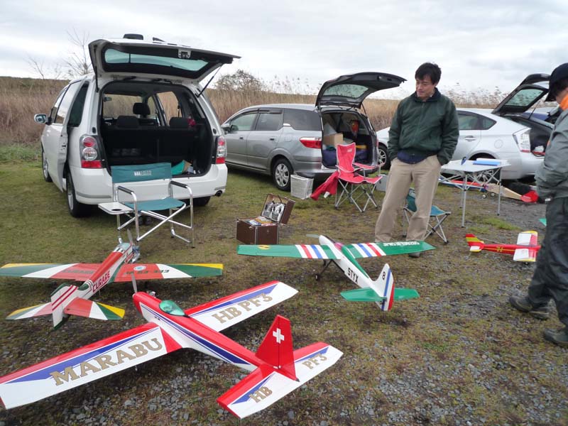 | 2013年4月21日京都市伏見区のKMA関西模型飛行場で上記大会が開催されました。 予報では早朝は雨、その後徐々に良くなるとのことで天候が良くなることを期待して飛行場に向かいました。 幸い、午前7時前には雨もあがり、会場には各地から選手の皆さんが続々と集まりました。 午前8時から受付、9時から飛行を開始しました。 天候の回復につれて風が強まることが予想されましたので、いつもの全員集合、記念撮影は後回しにして早速飛行開始、例によって準備のできた人から、3機までの同時飛行でどんどん飛ばしてもらうという、このイベント特有のスタイルです。 午前11時、皆さん思い思いに飛ばされて一段落されたようですので、ここで皆さんの思いのつまった機体をそろえて記念撮影。 その後、3分間のタイムラリー競技を実施し、昼食としました。 昼食の後、午後のフライトとしましたが、強まる風のためか、空があいている時間が多くなってきましたので、少し早いですが午後2時過ぎから閉会式。 長谷川KMA会長から入賞者の皆さんにメダルと賞状を贈呈し、そのあとお待ちかねの抽選&ジャンケン大会で協賛各社からいただいた景品の数々をお渡ししてお開きとしました。 最後になりましたが、今回御協賛いただきましたメーカー様、並びに当日運営にご協力いただきました皆様に厚くお礼を申し上げます。 協賛社(順不同):小川精機株式会社、日本遠隔制御株式会社、株式会社OK模型、株式会社テトラ ・ 当日の参加データをこちらからご覧ください。なお、データは申込終了時点のものです。 ・ 竹林 悟さんからいただいた当日の写真集もご覧ください。 (文と写真:山本 修造) |