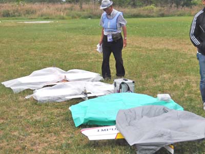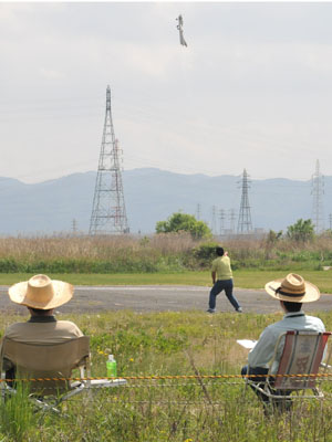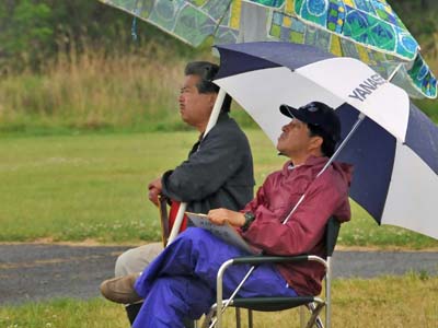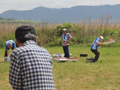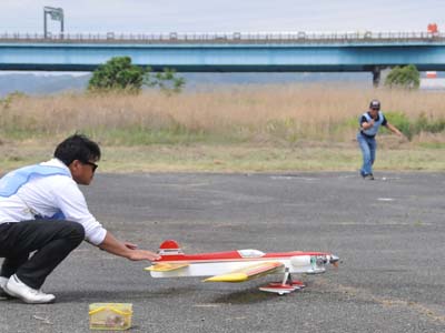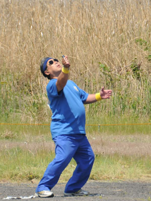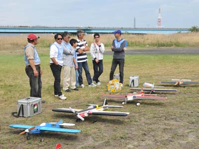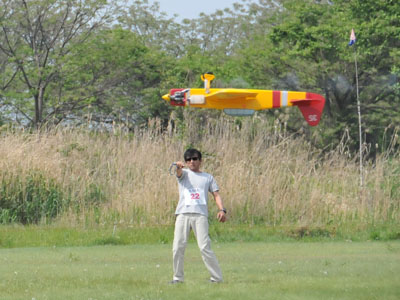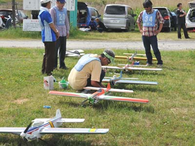 今年も5月18〜19日において京都市伏見区の関西模型飛行場において競技会を開催いたしました。 心配していた天候も18日は朝から晴れ20〜27℃微風で飛行日和となりましたが、 19日は朝から曇り昼から雨、気温も20〜22℃と低い一日となりました。 そのような中、東は栃木県、西は福岡県の広範囲に渡り選手が集いました。 18日は、F2Bノスタルジア、F2Bプロフィル、小型2種、風船割りの4種目を39名の参加者に より風船割り以外は2ランドの高い得点で競い合いました。 当日は、微風独特の風向きで定まらず、選手もジャッジも右往左往した1日でした。 F2Bノスタルジアは、2005年から10個の金メダルを目標にしている、原選手が、今年も やってくれました。1ランド目は、末松選手に抜かれて2位となっており、休憩時間も氏に近寄り難い 雰囲気の中で、2ランド目に向かい逆転でみごと優勝を勝ち取りました。 昨年2位についていた佐藤選手は、残念なことに1ランド目の飛行中のアクシデントに会い、 早々に脱落してしまいました。 F2Bプロフィルは、1ランド目の清水選手が、1935.1点と脅威的な点数を上げ、原田選手、 植松選手、林選手を余裕を持って抑え、昨年に続き優勝いたしました。 風船割り競技は、本来裾野を広げるための競技会でしたが、今では専門化しなかなか熾烈な競技に なっています。 昨年は最下位になっていた塚本千景選手が、この1年間研鑽を積み今競技会に望み、みごと優勝を さらいました。 この競技に命を掛けていた中林選手も脱帽状態で、何時も競技会のとき愛用していた刀を優勝者に 引き継ぐことにされました。(入賞者写真に刀が写っているのは、そのためです) 小型2種スタントは、1,2ランドとも首位を守り、安定した成績を取られた馬場選手が優勝いたしました。 19日は、メインのF2Bオープンスタント競技です。昨年より30%多い33名の選手参加がありました。 天候が昼から崩れることが予想されたため、急遽競技は2ランド合計で決定することにしました。 風力は少しありましたが、風向きは一定しており、各選手飛行には問題なかったようです。ただ、 予想通り昼から雨模様で、ワイヤー、機体整備と各選手は大変な日になったようです。 今年の優勝者は、能米選手となりました。 8位までの選手の2ランド合計が4000点超えとなるハイレベルの戦いになり、誰が優勝しても おかしくない試合でした。 能米選手は、1ランド目の成績が、松村選手に抜かされ2位となったことが、ジャッジが違うと言えども、 かなり気にしておられ、2ランド目の演技に向かって気合を入れておられました。 毎年実力を上げ昨年10位になった若手のホープ15歳の横山和哉選手が、父親の満氏をも抑え今年は、 5位となりました。 表彰式は、かなり雨もきつくなったためテントの中での表彰、記念写真となりました。 夏季大会の案内をして、今大会を終了いたしました。 今大会では、2011年発生の十津川村台風12号災害募金箱を設けさせてもらい、寄付金5000円を 十津川村役場に寄付させていただきました。皆様のご協力を感謝いたします。 成績 F2Bノスタルジア 1位:原 誉祠 2位:末松茂樹 3位:比気 勝 F2Bプロフィル 1位:清水英敏 2位:原田秦一 3位:植松正成 小型2種競技 1位:馬場真澄 2位:蓑田尚人 3位:成瀬昭彦 風船割り 1位:塚本千景 2位:中林克夫 3位:加藤清孝 F2Bオープン 1位:能米昭一郎 2位:松村督浩 3位:末松茂樹 (文、写真:河野眞明) |