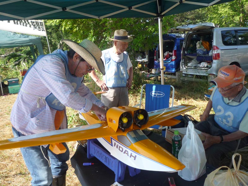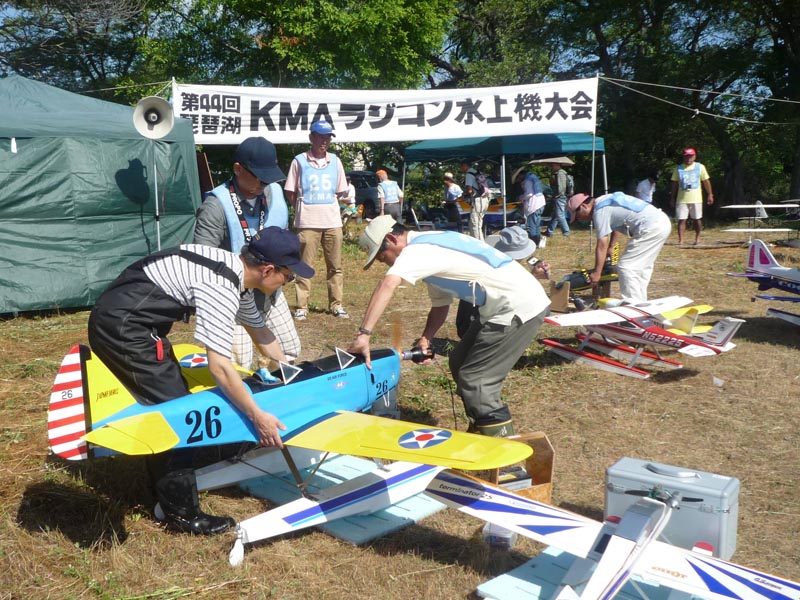 | 2013年6月19日滋賀県高島市の琵琶湖畔で44回目となるKMA水上機大会が開催されました。 梅雨時ということで天候が心配されましたが、当日は雨もあがりまずまずのコンディションの中、開催することが出来ました。。 参加者は初級が6名、中級が7名、そしてオープン級が14名です。 湖面は水量もほどほど、、またうねりもなく好条件といえるものでしたが時間とともに西風が強くなり、上空では大きくあおられる機体もあり、選手の中にはかなり緊張されるかたも見うけられました。 そんな中、昼食を挟んで午後2時前には全選手の飛行を終了、表彰式の後、お楽しみの協賛各社からの賞品をくじ引きでお渡ししてお開きと染ました。 なお、KMAでは同じ会場で9月15日に水上機フライインを開催しますのでぜひご参加ください。 最後になりましたが、当日ご協賛いただきました各社様にこの場をお借りしてお礼申し上げます。 協賛:(株)テトラ、ヨシオカモデスファクトリィ大翔、ダイモ(株)、双葉電子工業(株)、小川精機(株)、(株)サワイ商店、三和電子機器(株)、(株)マルク ヒロボー(株)、(株)OK模型、日本遠隔制御(株)、カシオペア、エンジンプラザ.ユニ(順不同) 当日の参加機データと成績表はこちらをご覧ください。 (文:山本 修造、写真:竹林 悟、山本 修造) |