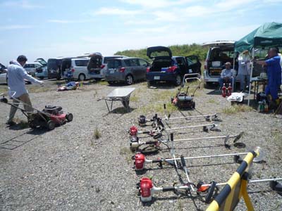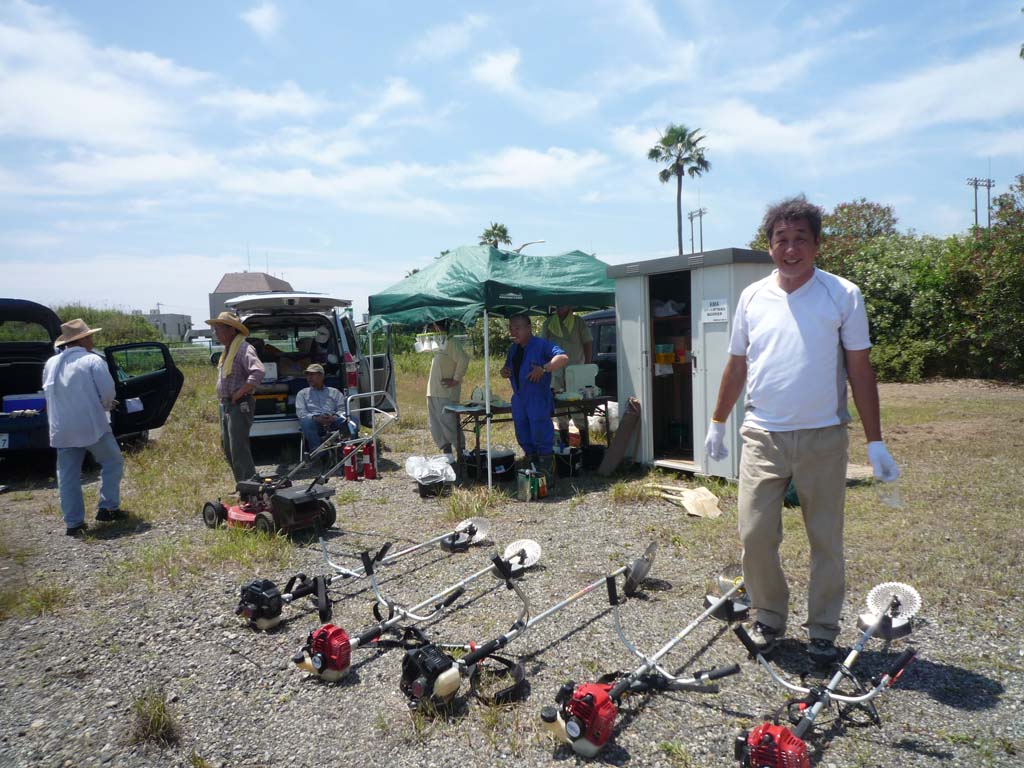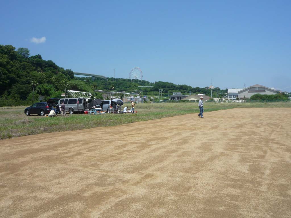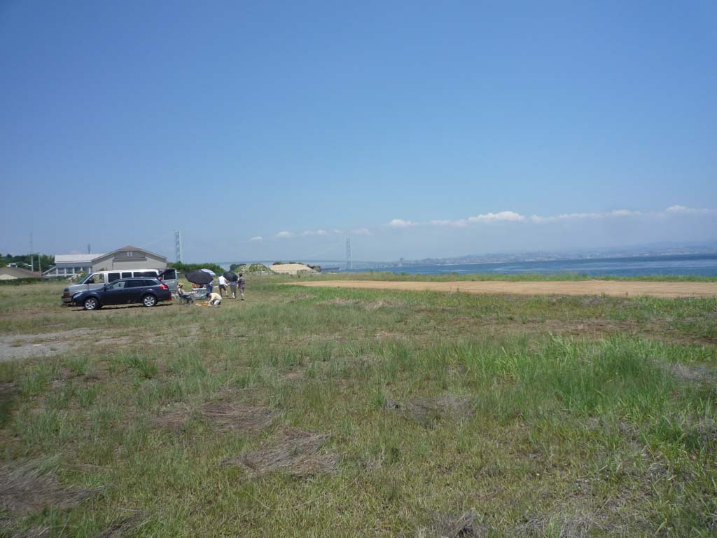| 2013年6月29日、兵庫県淡路市の岩屋新飛行場(仮称)の整備とテストフライトを実施しました。 この地は青木あすなろ建設様のご厚意と淡路市のご協力を得て、KMA次期飛行場として整備、建設しているもので、これまでに有志の方々によって雑木、雑草、ゴミの類いを取り除く作業を何度も行ってきました。 そのおかげでようやくテスト飛行用の短い仮滑走路を敷設出来るまでになり、今回のテスト飛行となりました。 当日は朝早くより有志の皆さんにお集まりいただき、敷地内外の草刈り、滑走路周辺の大きな石の撤去、漂着したり釣り人が放置した空き缶、ペットボトルなどのゴミ清掃を行いました。 梅雨の合間の強い日差しの中、3時間以上にわたる整備作業を行った後、離着陸のコースの状況や上空での飛行空域の調査のための飛行を行いました。 まずカシオペアの加藤氏操縦のビデオ搭載機によって飛行中のコースと周辺施設との距離をチェック、事前の衛星写真による予想とほぼ合っていることを確認しました。続いてF3A曲技委員長の神戸氏による70エンジン搭載曲技機でのパターンフライト、高松利充氏による20ccガソリン機による飛行などを行い、空域と離着陸コースの確認を行いました。 その後、参加メンバーによって電動機やモーターグライダーなどの飛行も行い、飛行空域や離着陸コースには大きな問題はないとの確認がとれましたので、この後は滑走路の本格延長、フェンスの設置、周辺地区、施設への説明などの段階に進むことになります。 イベントなどを実施する正式開港までにはあと少し時間がかかりますが、明石海峡大橋を見渡せるすばらしい場所での飛行を、皆さん楽しみにおまちください。 (文と写真:山本 修造) |