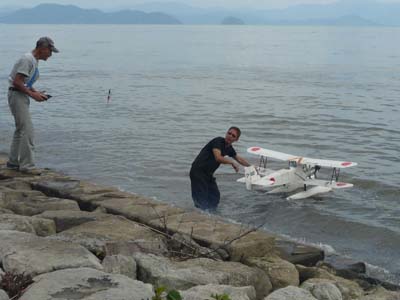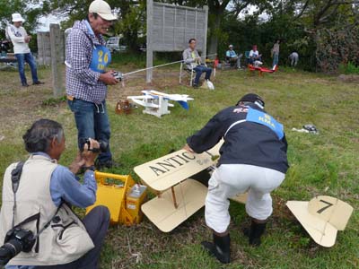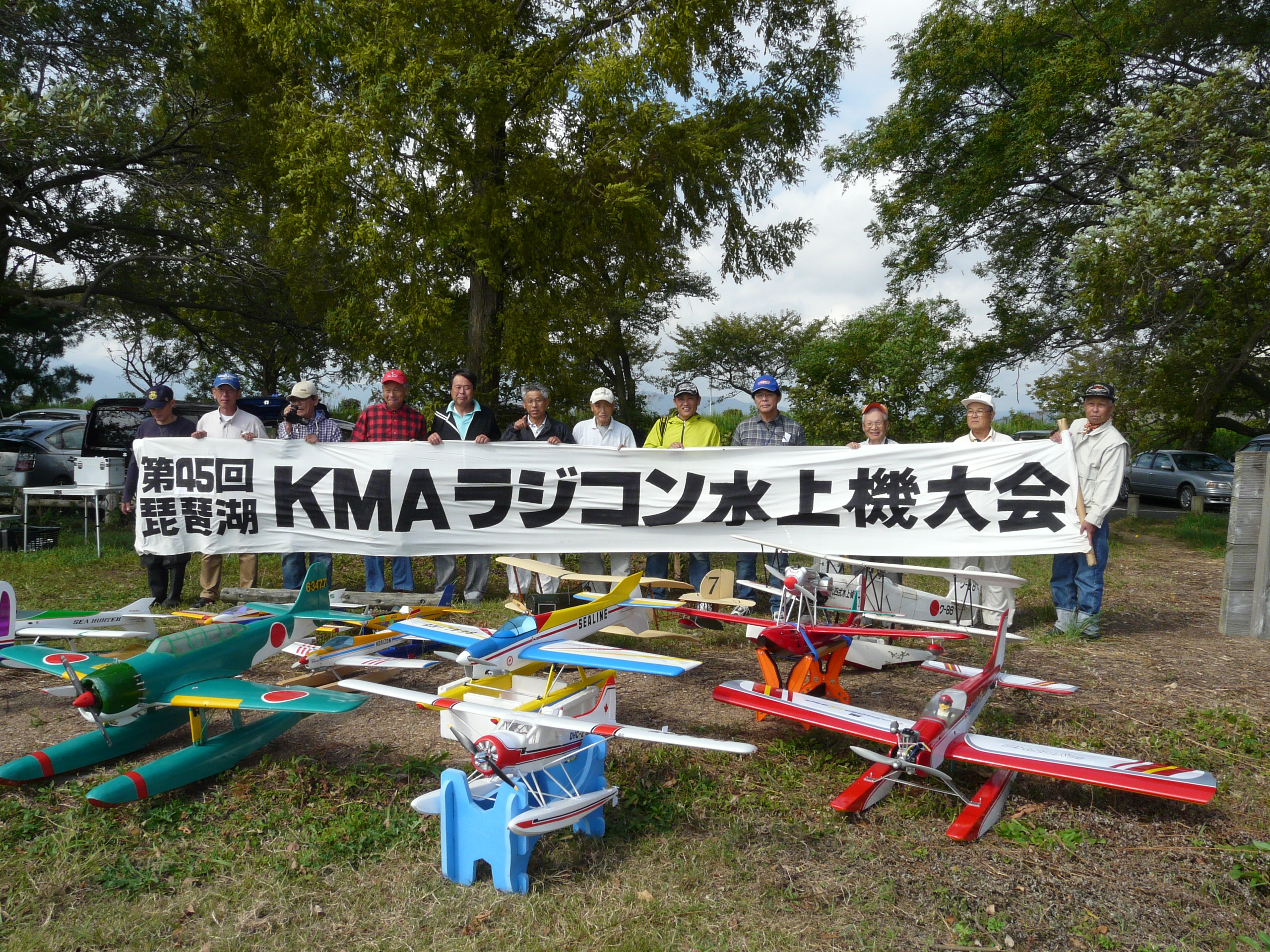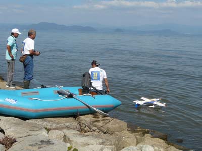 | 今年のKMA水上機琵琶湖秋季大会は9月29日に行われました。 朝から風が強く波も高くてとても飛ばせそうにありませんでしたが、午後には天気が良くなるらしいのでとりあえず9時30分に開会式を行いました。 その後も飛行を見合わせていましたが10時頃になると少しずつ波風が収まってきました。 デモフライトに来たカシオペアの加藤さんはこれなら飛ばせるでしょうと、トップを切って見事なフライトを行いました。 これに勇気を得たのか参加者もフライトを始めました。それでもまだうねりが高いので、大型機が率先して次々と飛ばし始めました。 そのうちに小型機も離水に挑戦を始め、湖面は賑わいを増まし、絶え間なく2機が空に上がり、降下してきてはタッチ&ゴーに挑戦したり、中にはエンストして救助ボートのご厄介になったりします。 昼ごろからは、更に波も静まり、水上機日和となりましたので、午後は自由フライトとして好きなだけ飛ばしてもらい、3時前まで存分にフライトを楽しみました。 3時過ぎに閉会式を行い、協賛メーカーさんから頂いた多数の賞品をくじ引き方式でお配りし大会を終了しました。 (文と写真:竹林 悟) 当日の参加機データと成績表はこちらをご覧ください。 |
