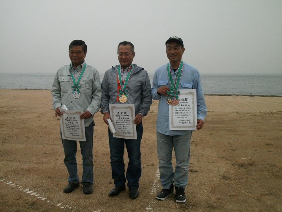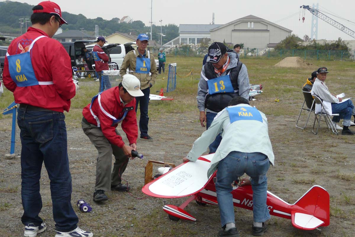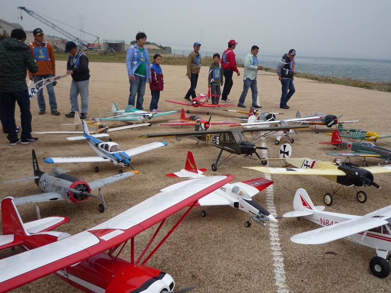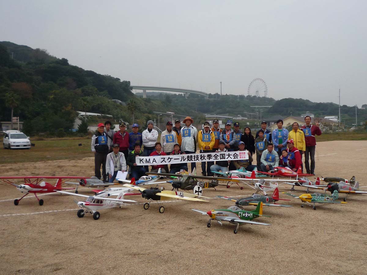 | 11月3日秋のスケール大会が淡路市岩屋のKMA飛行場で開催されました。 まずKMA長谷川 克会長が『KMAの大会は飛行場が完成して始めての大会です、 雄大な明石海峡と明石大橋を望む絶景地で、一日楽しんで飛ばしてください』と挨拶。 続いて、スケール委員長橋本より『本日は大会といっても気楽に飛ばせる飛行会という 気持ちで楽しんでください。最初にタイムトライアルが4分30秒目標で、続いてフライ・インですが5分目標で、実機の飛行らしく飛んだ方を選ぶため、スタッフが勝手に実機感を 審査します』とルールを説明、大会がスタートしました。 天候があいにくの曇で午後から雨の予報もあり、心配しながらの進行でした。 途中、地元の 方々による特産品、タマネギ・ミカン・ワカメなどの販売もあり、待機選手は待ってましたとばかり の大賑わい、フライト中の選手もそわそわタイムトライもそっちのけで、早々に着陸して、 家族にお土産をと買い込み、お陰様で、販売も1時足らずで早々と売り切れました。 一ラウンドが終わり、昼食休憩、休憩中に今話題のマルチコプターを有志がフライトして くれました。なにやらジャイロがMax6ケも積んでいるとか、さらにGPSの位置記憶装置も 積んでおり、ゴーホームSWで送信機から手を離して、自動で記憶させた位置に飛行して 戻ってきました。 観客皆、ホーと感嘆した様子でした。 第二ラウンドは自由飛行です、準備の出来た人から、順次飛行しました。スタッフはその間 採点の集計、表彰状の準備です。 2時過ぎ、いよいよ雨が降り出して来ました。急いで表彰式に移り、濡れないうちに授与も終わり『皆さんお疲れ様でした来年5月に又、この会場でお会いしましょう・・』と、とにかく 無事に解散・終了しました。 (文:KMA 橋本 実スケール委員長 写真:橋本 実、竹林 悟、山本修造、 データ:竹林 悟) |