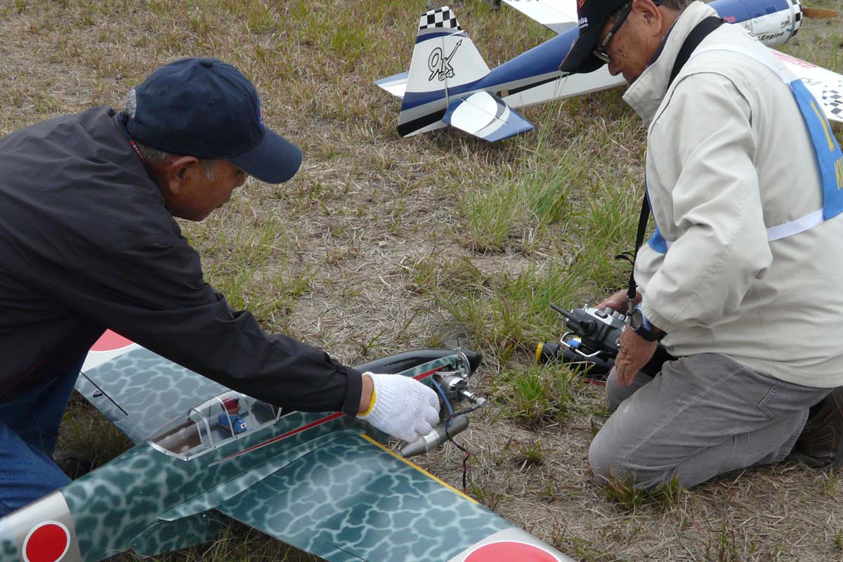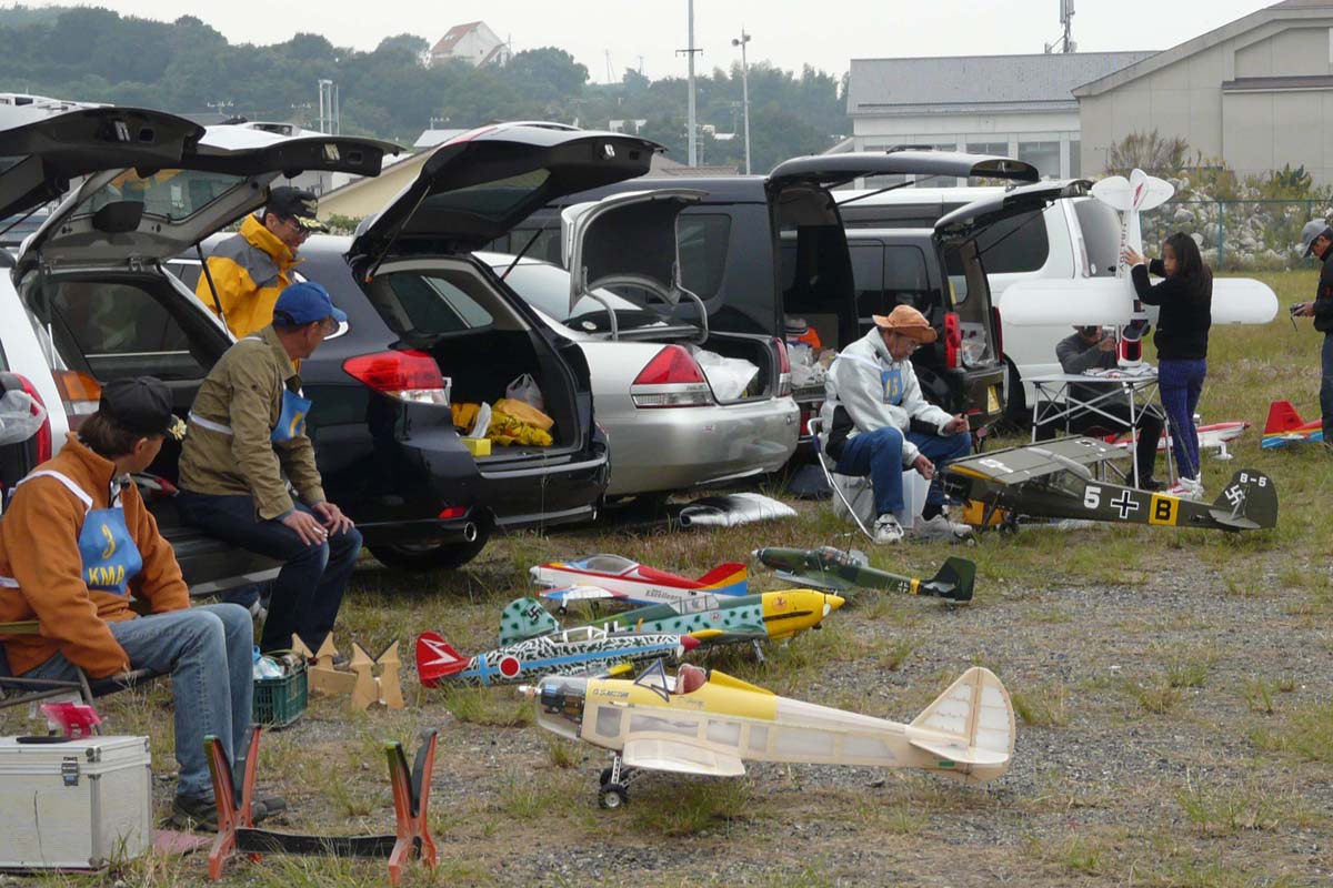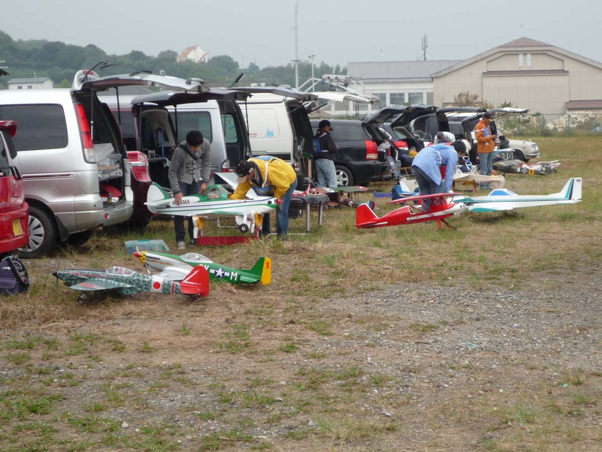 | 開会式、橋本委員長から空域とルールの説明 | 記念撮影の後は参加機を一堂に会して展示会 | |