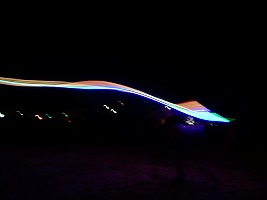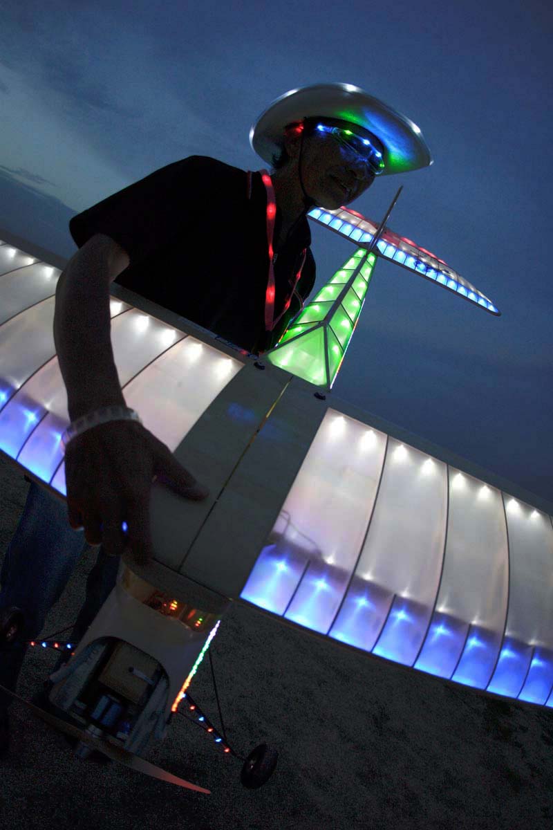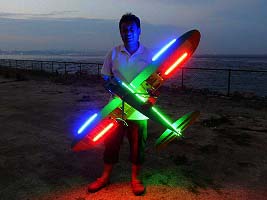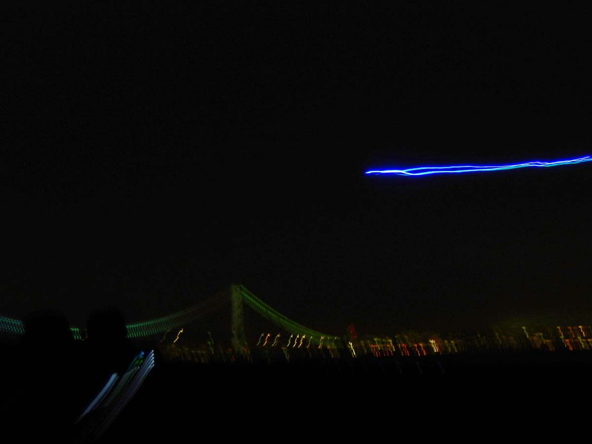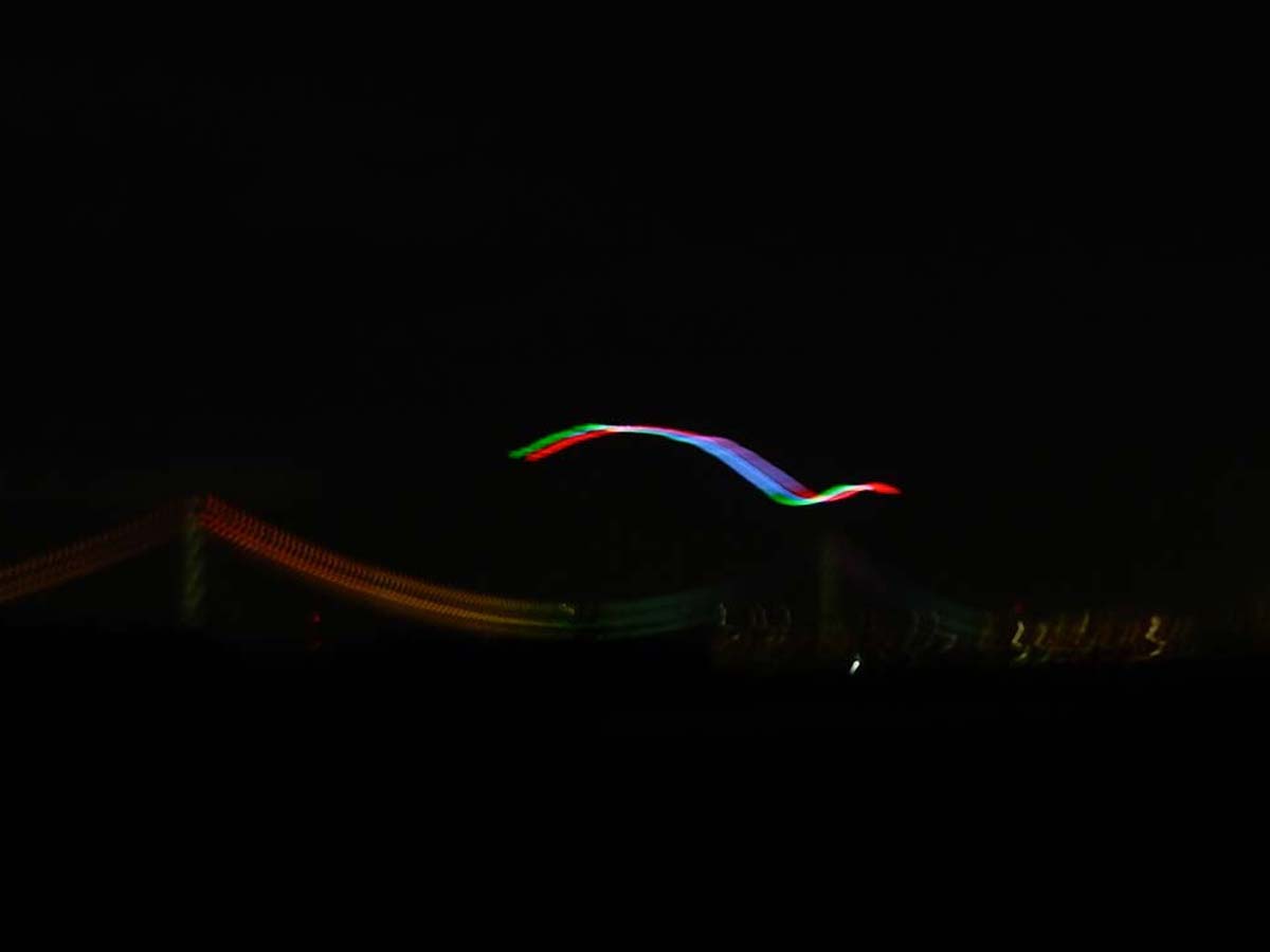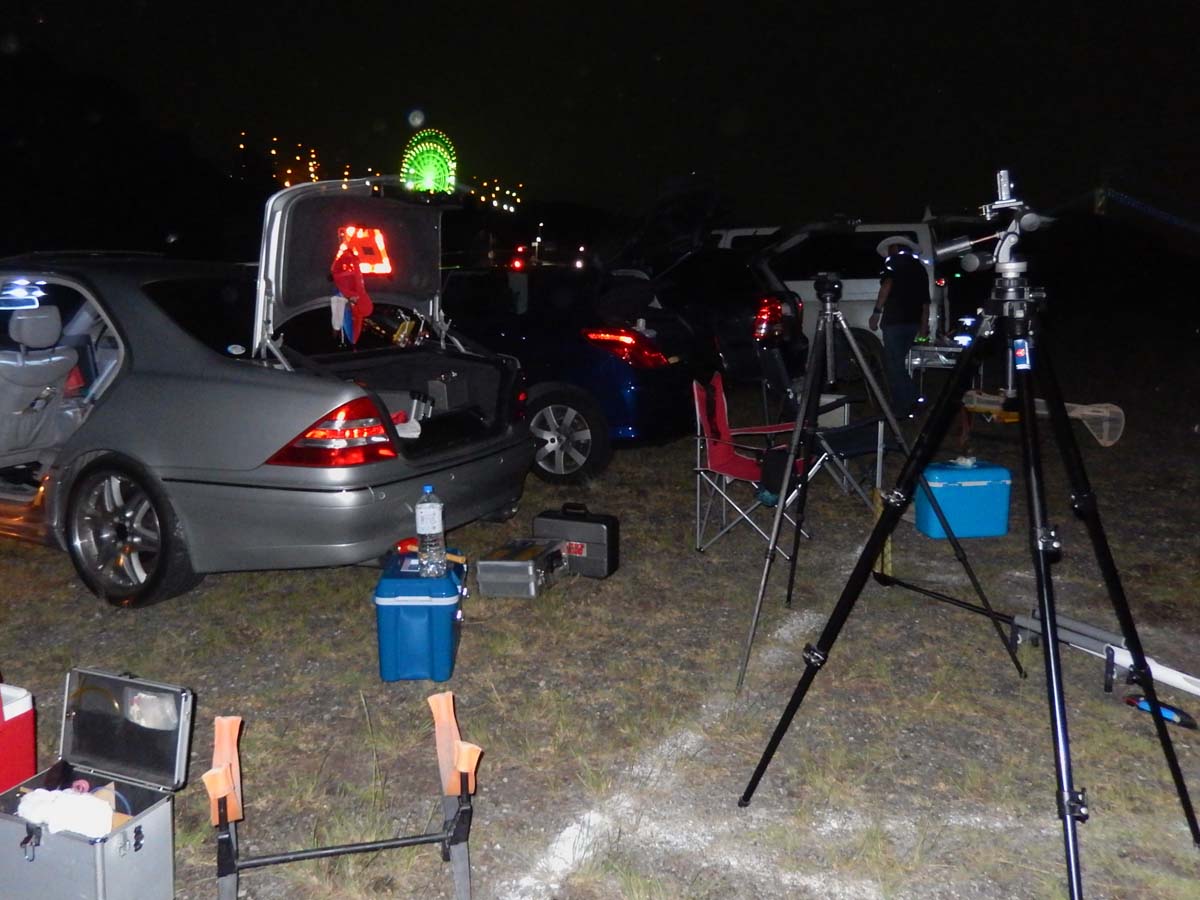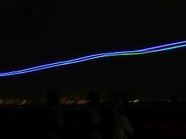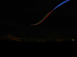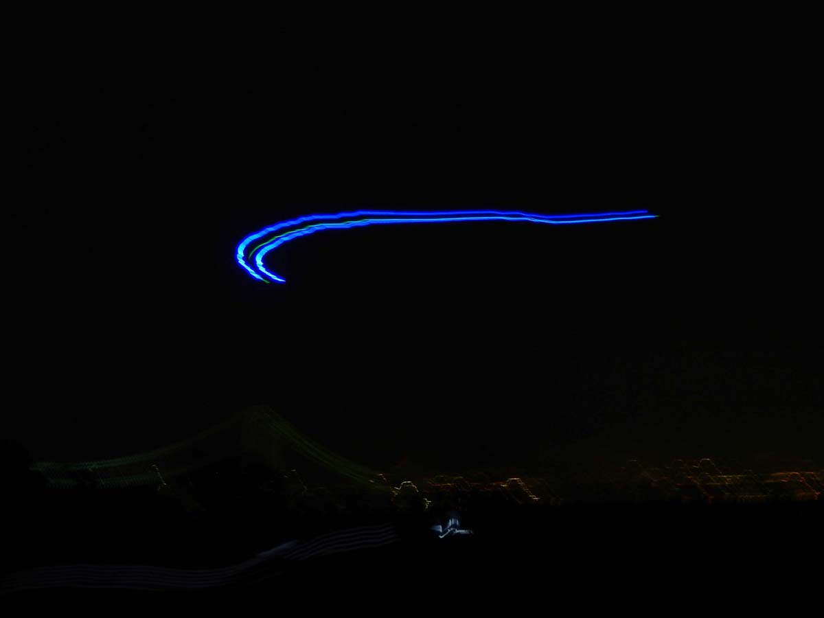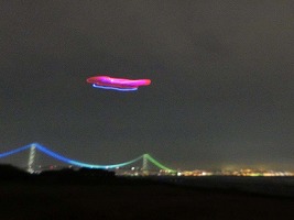 | 「やはり夏の夜はこれに限りますなー」と2014年7月12日 兵庫県淡路市のKMA淡路市・岩屋模型飛行場で、KMAニューカテゴリー研究会が主宰する上記催しが開催されました。 迎えて4回目となるこのイベント、直前に台風が来るとの事でやきもきさせられましたが予想外に早く通り過ぎ、当日は朝から真夏の日差しが照りつける好天となりました。 いつも通り、皆さん趣向を凝らした愛機を持って、早い人は朝のうちから三々五々飛行場に集まり、日の高いうちにテスト飛行やLEDライトの準備に余念がありませんでした。 また会場のあちこちでは情報交換などに輪が出来、それぞれの機体のウンチクを聞くなど、この大会ならではの風景も見られました。 この時期、日没は7時過ぎですが本当に暗くなるのはまだまだ先です。 それでも待ちかねたメンバーが次々とライトを点灯してナイトフライトを始めました。最近のLEDは高輝度タイプが多く、少々周りが明るくても機体は明るく光り輝き本番の美しさを期待させます。。 日没とともに飛行場から見える明石海峡大橋と淡路SAの観覧車もライトアップを開始、周囲もどんどん暗くなってきた午後8時頃、ナイトフライトの雰囲気も盛り上がって来たところで皆さん続々と本番?のデモンストレーションを開始しました。 機体は電動飛行機、エンジン機、モーターグライダー、ヘリとt多種多彩で、それぞれ個性的な光の帯を夜空に描きます。 幸か不幸か上空は雲が多く、月の光も遮られて機体のイルミネーションが描く光の帯が鮮やかに浮かび上がり、フライヤーもギャラリーも真夏の夜のフライトに酔いしれていました。 また、遠景に浮かび上がる明石海峡大橋のライトアップとのコラボも楽しく、過去に貴船飛行場で行った真の闇の中とは雰囲気の異なる、華麗な舞台での飛行となりました。 皆さん、あまりの美しさ、楽しさに時間のたつのを忘れてフライトは続き、結局予定の9時を30分オーバーするまで飛ばし続けました。 心配された事故もなく、全機無事に夜の飛行場からの離発着をこなし、またぜひ次回もこの地で開催をということでお開きとしました。 ・参加者と機体の照明データなどはこちらからご覧ください。なお、データは申込時点のものです。 (お断り) このイベントは 誰でも、何処ででもラジコン模型による夜間飛行をすることを勧めるものではありません。 (社)関西模型クラブ連合会が専用飛行場で、参加者がラジコン保険等に加入していること、無線機は日本ラジコン電波安全協会で認証を受けた製品に限ること、当日参加者の機材、操縦技術等を事前に審査するなど、万全の安全性確保の施策を行ったうえで夜間飛行を実施したものです。 (写真:駒宮康隆、山本修造 文:山本修造) |