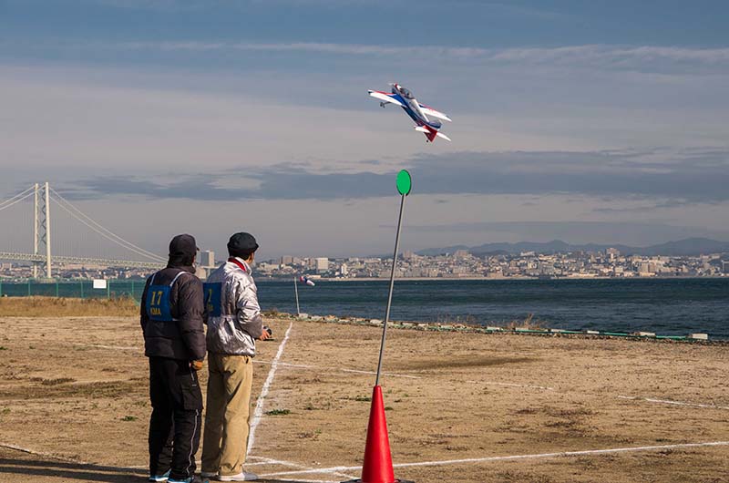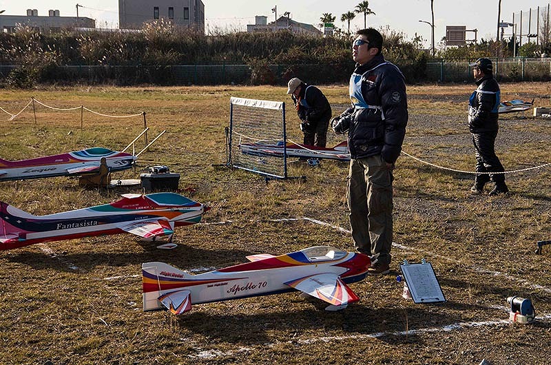 | 10月13日開催予定でしたが台風の接近により延期となっていました検定会を12月7日にKMA淡路市岩屋模型飛行場にて実施しました。12月にしては1月下旬並の寒さで、気温の低さに加え、風による体感温度の低下に指が凍えがちですが、皆さん検定に挑んでくださいました。条件は晴れ、少し強いくらいの後ろ風です。スポーツマン級からアドバンスト級と始まりました。P15もほぼ1年がたち、皆さん、かなり習熟されてきており、KMAの検定会にしては合格率も高くなりました。