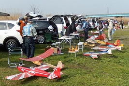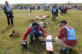 | 4月12日、心配された雨もあがり、穏やかな天候となったKMA京都飛行場に、今回も関東から九州まで幅広い地域から参加者32名、持参の飛行機80機近くが集なり、恒例のイベントを開催しました。 今回は、このイベントを主催するKMAビンテージ委員会の委員長を20年以上勤められた久保忠彦さんが3月にお亡くなりになっという悲報が届き、開会の前に参加者全員で黙祷を捧げさせていただきました。久保さんのご冥福を心からお祈り申し上げます。 開会式はいつも通り安全飛行に関する注意事項、初参加の方の挨拶などを行い、9時から自由飛行に入りました。 風もなく絶好の飛行日和に、皆さん積極的に飛ばされ、飛行を堪能されたところで予定を早めて10時30分ごろからタイムラリーを実施、そのあと昼食をはさんでフライトに、技術談義に、昔話に、皆さん思い思いに楽しい時間を過ごしておられました。 午後3時前、皆さん飛行を堪能されたのか空を舞う飛行機も無くなってきたところでお開きとさせていただき、表彰式の後、協賛各社様からの商品を抽選でお渡ししたり、参加者から提供いただいた貴重な品のオークションなどを行い、閉会としました。 当日協賛いただいたメーカー様、貴重な品をご提供いただきました方は以下の通りです。本当に有難うございました。(順不同、敬称略) 株式会社テトラ、株式会社OK模型、双葉電子工業株式会社、三和電子機器株式会社、小川精機株式会社 小橋楢久(大分)、藤川正晟(京都)、池谷猛(静岡) (文、写真:山本修造) |