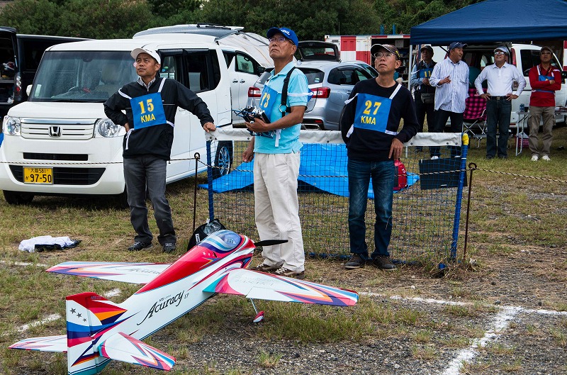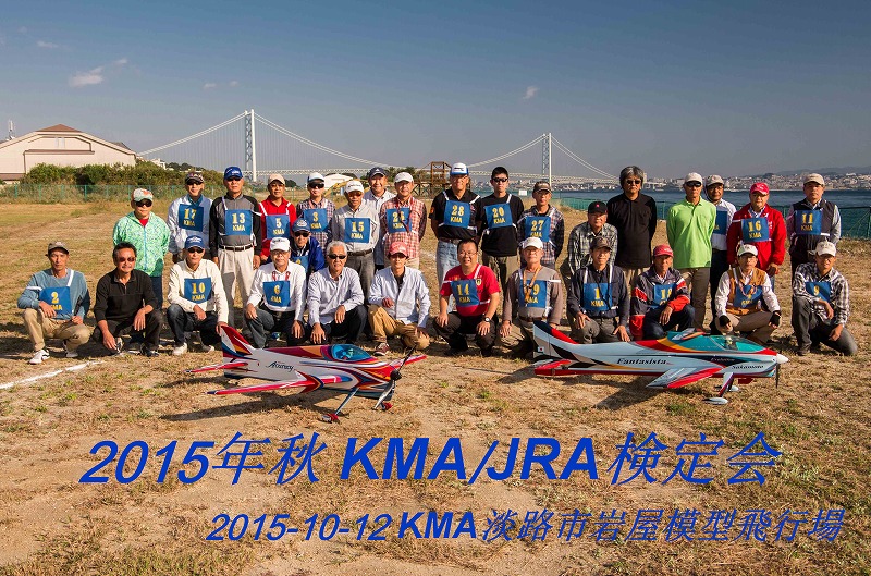 2015年10月12日に標記大会をKMA淡路市岩屋模型飛行場にて開催しました。検定会には先回から新設のスーパーマスターズへの受験を含め28名(エキスパート7名、プレマスターズ9名、マスターズ11名、スーパーマスターズ1名)、KMA