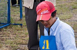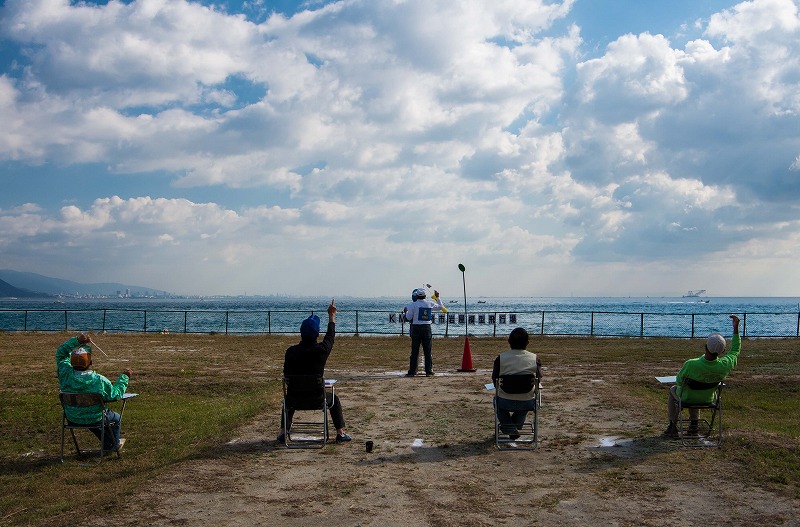 当日は朝から快晴で、流鏑馬がないと飛行できないくらいでした。8時45分にスーパーマスターズからスタートし、途中、急な雨に降られましたが、検定会は13時ごろに終了できました。天気が良く太陽がフレーム内にいるため、流鏑馬に慣れた上位クラスから始めました。各検定クラス内で、飛行順をくじ引きにより決め、出番も運のうちです。スーパーマスターズの金森さんは、春の検定では4点及ばず、涙を呑みましたが、今回は見事な飛びでKMA検定会にて初の合格者となりました。とても嬉しい限りでした。合格者はマスターズ7名、プレマスターズ6名、エキスパート6名と、これまでになく多くの方々が合格されました。P15も終わりに近づき、皆さんとても習熟されておられました。もう数ヶ月でP17が始まりますが、早く習熟され、来年も多くの合格者が出ることを期待しています。
