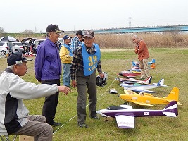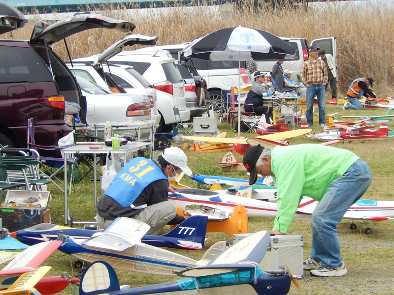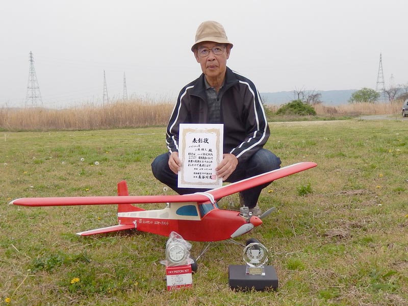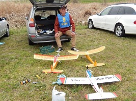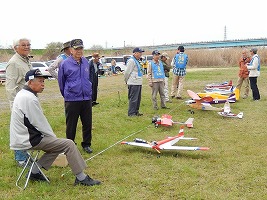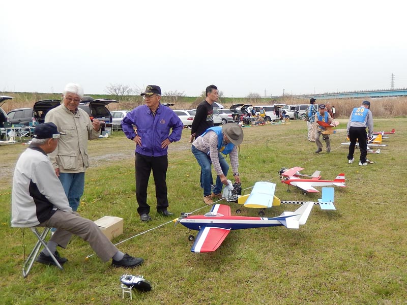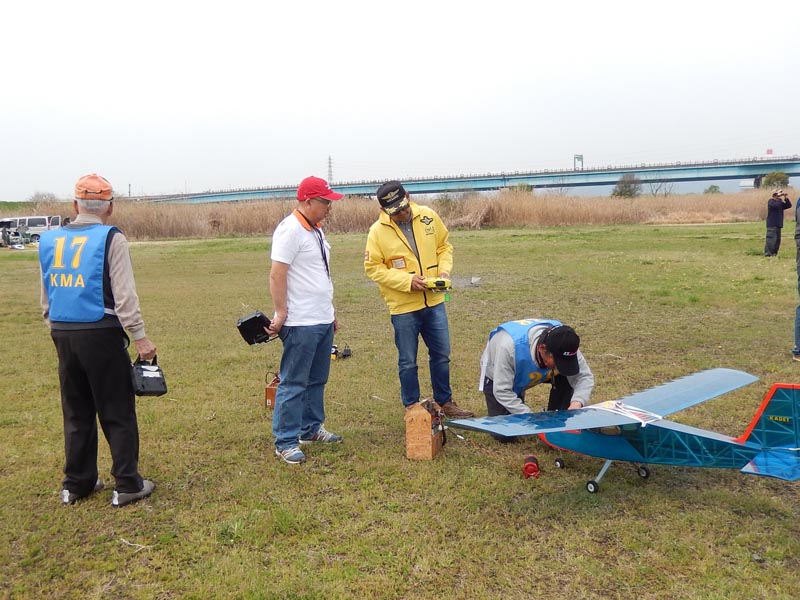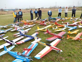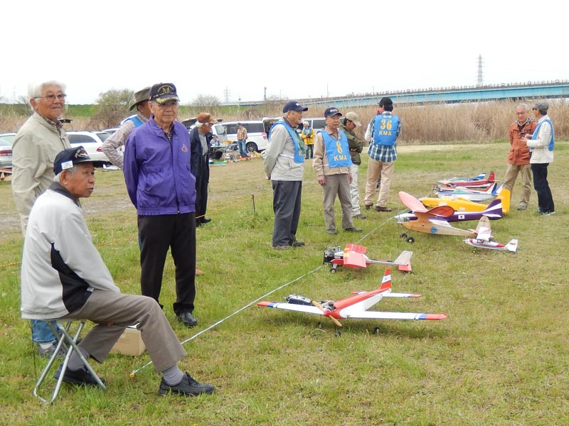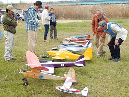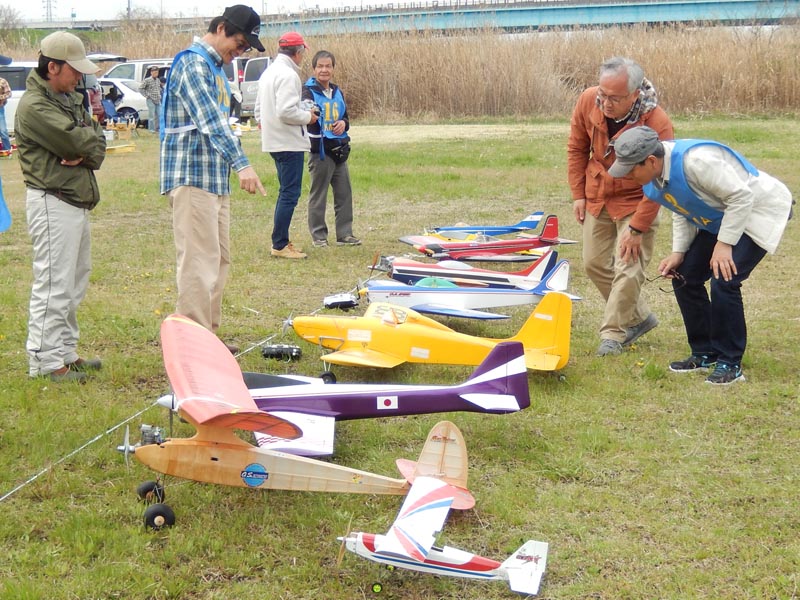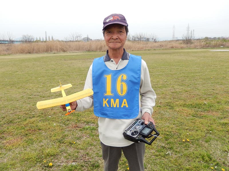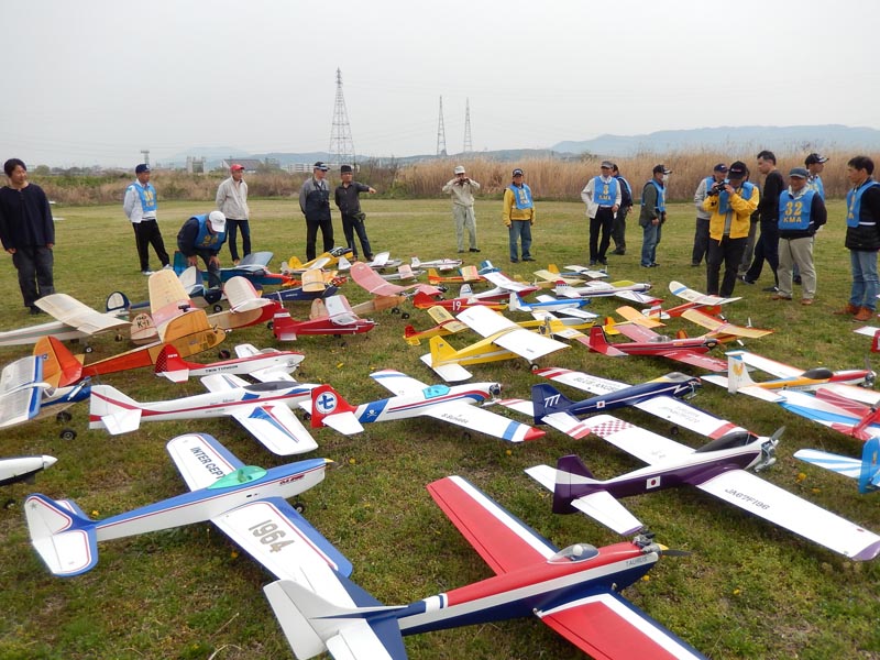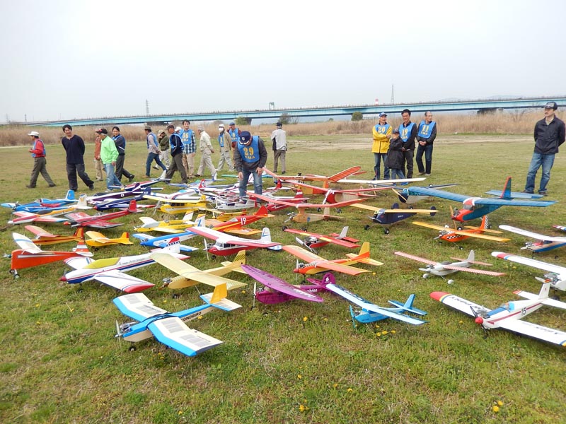 | 4月10日、恒例の標記大会をKMA京都飛行場で開催しました。 今回関東から九州まで幅広い地域から参加者34名、持参の飛行機84機が集まり、賑やかな大会となりました。 (当日の参加データはこちらをご覧ください) 開会式では、いつも通り安全に関する注意事項のほか、昨年12月10日から施行された改正航空法の概要、それに合わせて飛行高度150m以下とした今大会の飛行方法について説明を行いました。 その後、OK模型高松社長の手で高度150m以下でのデモフライトを実施、「結構高いな」とか「いや、それほどでも無いよ。ちょっと窮屈だ」などと参加された皆さんそれぞれに高度感覚を確認しておられる様子でした。 また、今回は日本遠隔制御さんにブース出店をお願いし、新製品等の展示のほかに、改正航空法に関係する機能として欠かせないテレメトリーやフェイルセーフの説明などを行って頂きました。 フライトはいつも通り自由飛行で、9時開始、曇天ながら風もなく絶好の飛行日和の中、次々と大空に愛機をフライトさせておられました。 いつも通り11時からはタイムラリー競技を実施、そのあとは昼食をはさんで午後の部の自由フライトといういつも通りのスケジュールで進行しました。。 これもまたいつも通り、フライトの合間、ピットでは技術談義に、昔話に、皆さん思い思いに楽しい時間を過ごしておられました。 暑くもなく寒くもなく、そしてほとんど無風という好条件の中、ひっきりなしに皆さんの愛機が空を舞いましたが、午後3時過ぎに飛行を打ち切らせて頂きました。 閉会式では、タイムラリー競技(ゴールデンエージの部とオールドタイマーの部)と今回から新しく加わった「ベストモデル賞」の表彰の後、協賛各社様からの商品を抽選でお渡ししたり、参加者から提供いただいた貴重な品のオークションなどを行い、お開きとしました。 最後になりましたが、今回御協賛いただきました企業様、並びに貴重な品をご提供下さいました皆様に厚くお礼を申し上げます。 本当に有難うございました。 ・ご協賛、ご支援頂いた方々は以下の通りです(順不同、敬称略) 日本遠隔制御株式会社、株式会社テトラ、株式会社OK模型、三和電子機器株式会社、双葉電子工業株式会社、小川精機株式会社、トップモデルジャパン 田井康郎(京都)、藤川正晟(京都)、池谷猛(静岡) ・入賞された皆さん(敬称略) タイムラリー競技 オールドタイマーの部 1位 栗田 信吾、2位 岩田 直樹、3位 藤田 太幸カ ゴールデンエージの部 1位 山本 慶司、2位 芝山 峰治、 3位 松尾 健史 ベストモデル賞 小橋 楢久 (文、写真:KMAビンテージ委員 山本修造) |