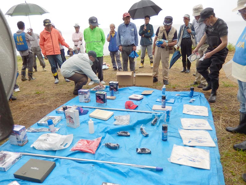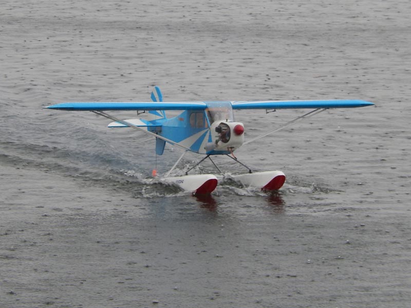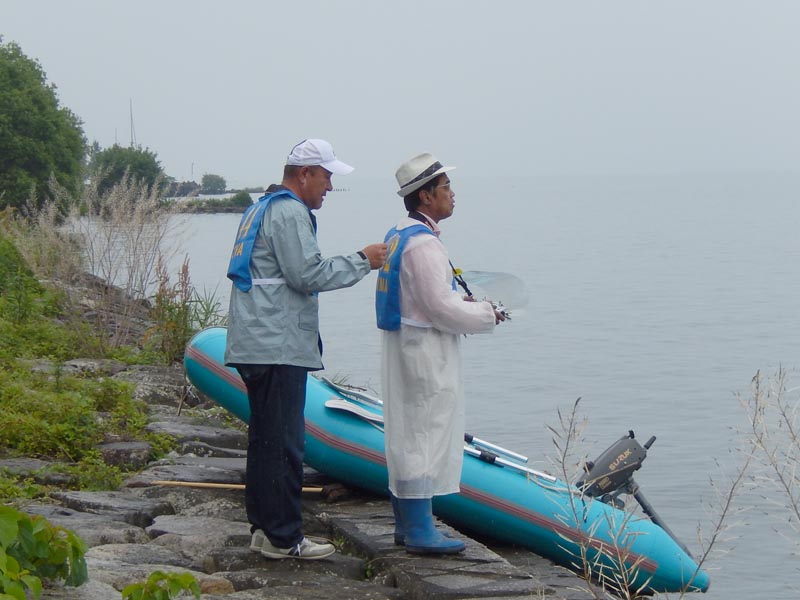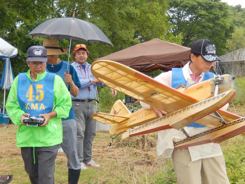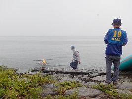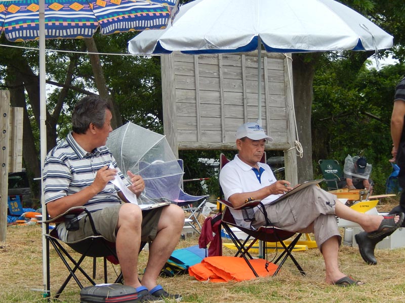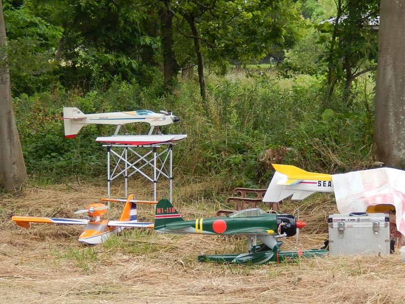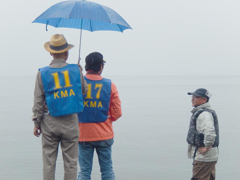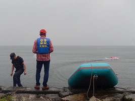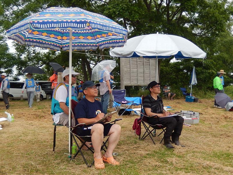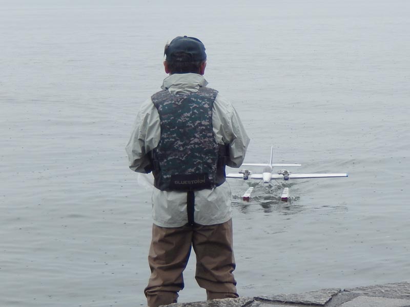 | 6月19日、恒例のKMA水上機大会が滋賀県琵琶湖西岸で開催されました。今回が第50回という節目を迎えたこの大会、参加申し込みが38名と過去最多となりました。 これまで途切れることなく開催できましたのも参加頂いた皆さん、KMA役員、そして支援頂きました会社様のお陰と深く感謝致します。 さて、いつも通り前日から会場に乗り込んだ有志の皆さんの手できれいに草刈りがされた会場には、雨天の予報にもかかわらず、朝早くから続々と選手の皆さんが集まりました。 刻々と雨雲が近づく気配の中、予定を早めて8時から開会式、続いてカシオペア加藤氏による曲技の目慣らし飛行、高度150mのデモ飛行を行ったあと、初級スタントの部から競技を開始しました。 競技開始後間もなくパラパラと小雨が降り出しましたが大した事は無く、湖面は波もなく穏やかで、皆さん次々と離水、タッチアンドゴーなど、湖面に鮮やかな波の軌跡を描いて飛行を堪能されていました。 初級の終了後、小川精機羽根田氏、OK模型高松氏によるデモフライトを実施、その後中級の競技に移りました。エントリーリストをご覧になればおわかりになるとおり、今回は参加人数も多く、ハイレベルな戦いになりました。 中級終了後は自由飛行を楽しむオープンクラスに移りました。しかしこの頃になると雨脚も少し強くなり、傘を差し掛けたり送信機にレインカバーを掛けたりと、選手の皆さんは防水対策に気を遣っておられました。 このような空模様のため、残念ながら今回は1ラウンドのみで競技終了ということとし、雨脚がやや強まる中、午後1時過ぎより閉会式、表彰式、そして協賛各社様からの景品の抽選会を行い、お開きとさせて頂きました。 最後になりましたが、ご協力頂きましたKMA委員並びに有志の皆さんがた、そして協賛頂きましたメーカー各社様に厚くお礼を申し上げます。 (文と写真:KMA 山本修造) |