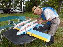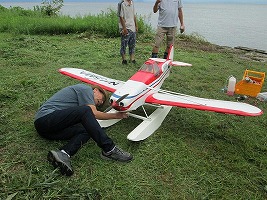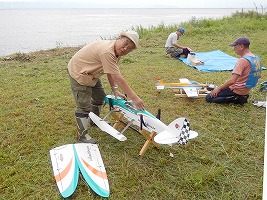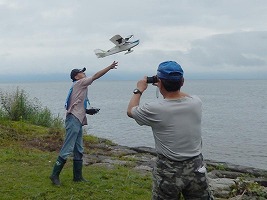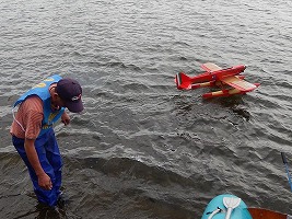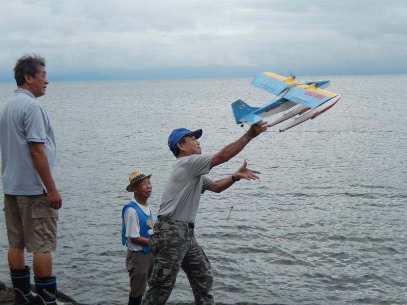| 9月18日、恒例のKMA水上機大会が滋賀県琵琶湖西岸で開催されました。 近づく台風の影響で前日から雨模様ということで開催が危ぶまれ、当日一旦中止との決定をしたものの、レーダーによる雨雲の様子から何とか開催できるとの決定がなされ、午前8時受付を開始しました。 春の大会では過去再多のエントリーで運営も飛行も大変でしたが、今回は3連休の中日ということも手伝ってかエントリーが非常に少なく、参加された方は曇天、横風ながら比較的穏やかな湖面というまずまずの条件下で飛行を開始しました。 その後、強い雨雲の接近が予想されたため正午をめどにフライトを終了することとし、皆さんから次々と飛び立ち、存分にフライトを楽しまれました。 今回はフライインのため表彰式は無く、協賛各社様からの景品の抽選会を行い、お開きとさせて頂きました。 前日から泊まり込みで会場整備下さった有志の皆さん、当日運営にご協力頂きましたKMA委員、荒天が予想されたにもかかわらずご参加頂いた選手の皆さん、そして協賛頂きましたメーカー各社様に厚くお礼を申し上げます。 (当日の参加データはこちらです) 御協賛(順不同、敬称略) (株)テトラ、日本遠隔制御(株)、小川精機(株)、双葉電子工業(株)、三和電子機器(株)、ダイモ(株)、(株)OK模型、(株)マルク、(株)サワイ商店、カシオペア (文:KMA 山本修造、写真:山本修造、KMA橋本実) |