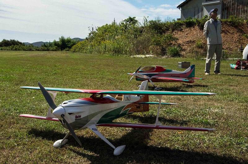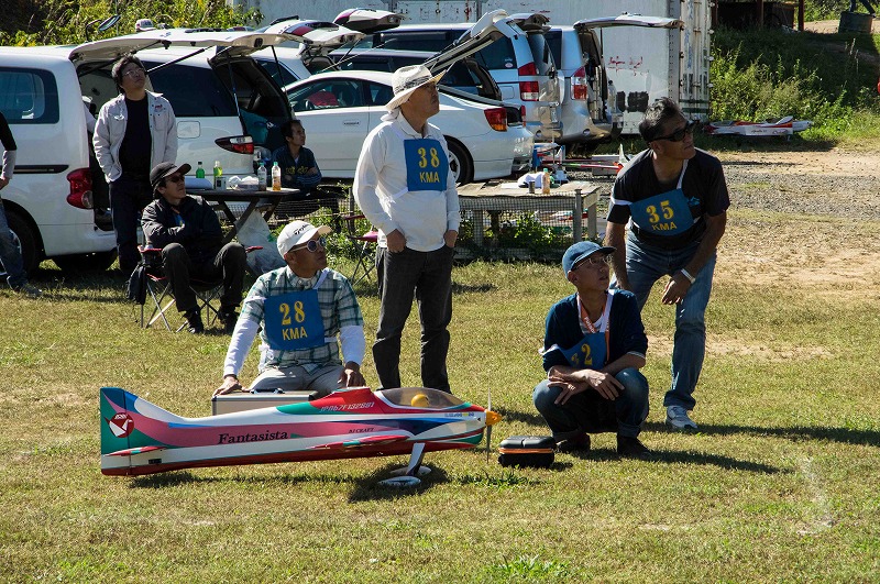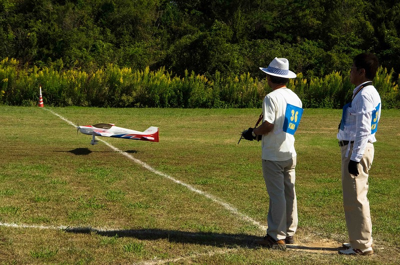 | 今年でプレ大会を含めて3回目です。70クラスでF3Aパターンを行うことも、少しは定着してきたかなと思うところです。これまで優勝者はお二人が占めています。プレ大会は三間選手、第1回は今村選手、今回は前風がかなり強く、70クラスには厳しい条件です。その中で、再び三間選手が優勝となりました。上位はわずかな差ですが、勝負強く、フライトの引き出しが多い三間選手に軍配が上がっているのかもしれません。 今年も2ラウンド合計として、捨てラウンドなし、ジャッジは4名で、演技ごとの上下カットの採点です。選手にとっては厳しい条件でプレッシャーもかかります。 1ラウンド目は昨年の覇者今村選手がトップを取ります。フライトもなかなかいいですね。練習の成果が見えます。三間選手、金森選手とわずかな差で続きます。少し桝田選手は出遅れた感じです。2ラウンド目は三間選手がトップを取りました。1ラウンド目トップの今村選手はやはり、やってくれましたね。いつも何かがあります。これも2ラウンド合計の怖いところで、一回の失敗が勝敗を分けることになるのです。金森選手は手堅く飛ばし、桝田選手も存在感を出してきました。が結果、優勝は三間選手、二位は金森選手、三位は今村選手となりました。皆さん、よく練習をされており、レベルが上がってきているように思います。 ジャッジの講評としては ・風への対応が勝敗を決めたと思われる(今回は強い前風でした) ・水平飛行を大切に ・フライト時間を計って練習してみてはいかがか。7分を少し超えるくらいを目標に。 来年は70クラスのスタント大会は継続します。別の競技も検討していきたいと考えていますので、参加のほど、よろしくお願いいたします。 大会の運営に際して、飛行場をお貸しくださいましたエアーキラー様、役員にてお世話を頂きました山原様、藤本様、加藤様、ジャッジとして久山様(岡山)、上田様、中田様、坂本様には感謝申し上げます。 (文と写真:KMA RC曲技委員長 神戸 祥明) |