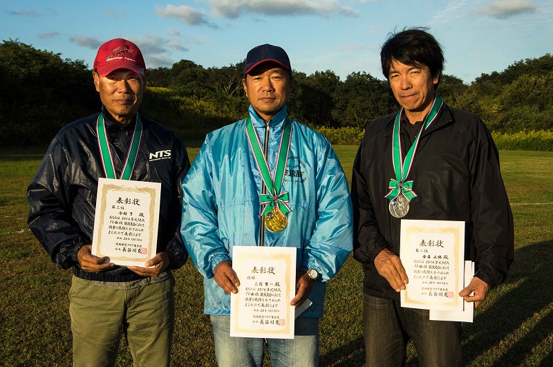 ![]() 左から3位:今村選手、優勝:三間選手、2位:金森選手 |